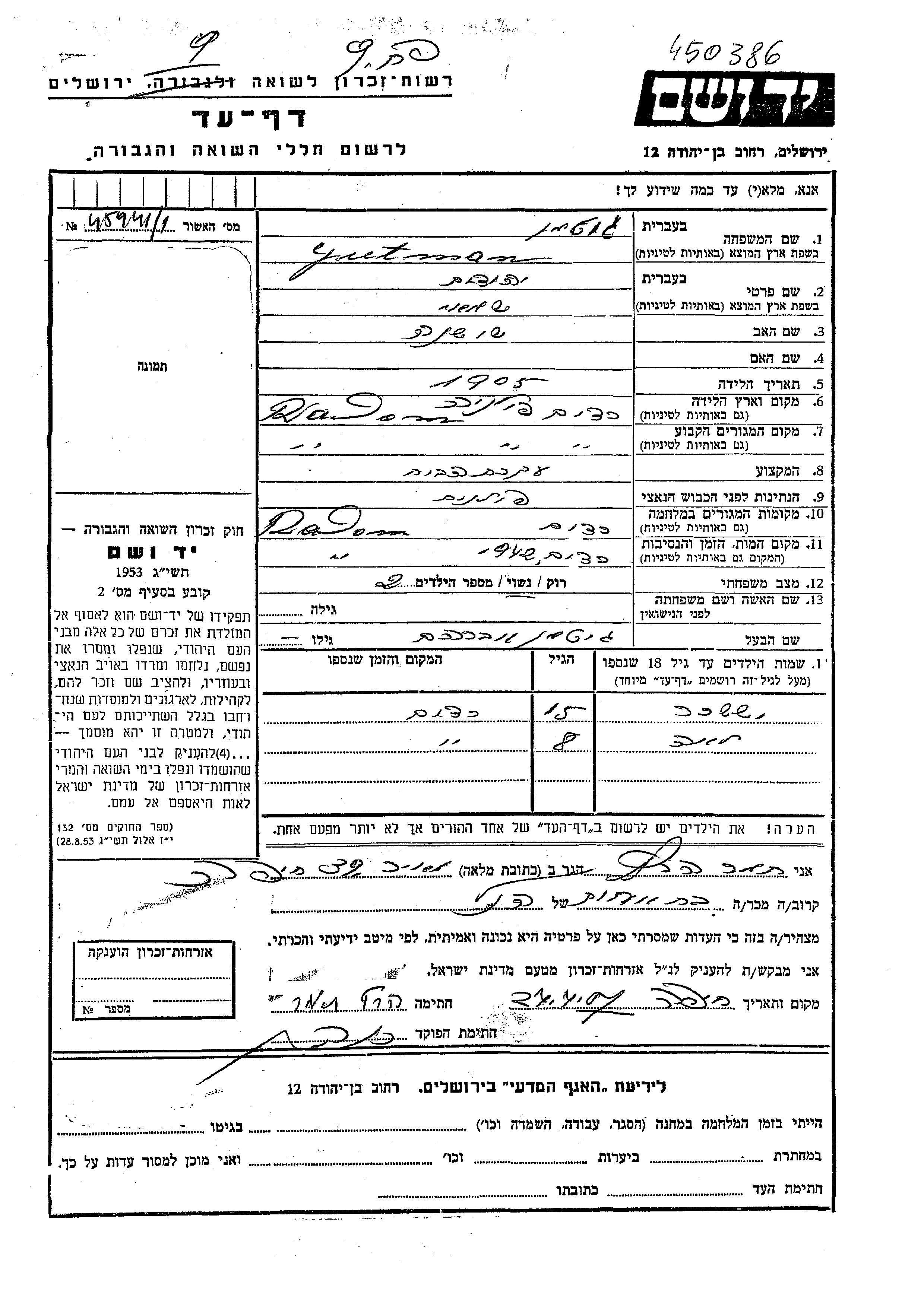 יד ושם - המפעל להנצחת השמות בדפי עד
