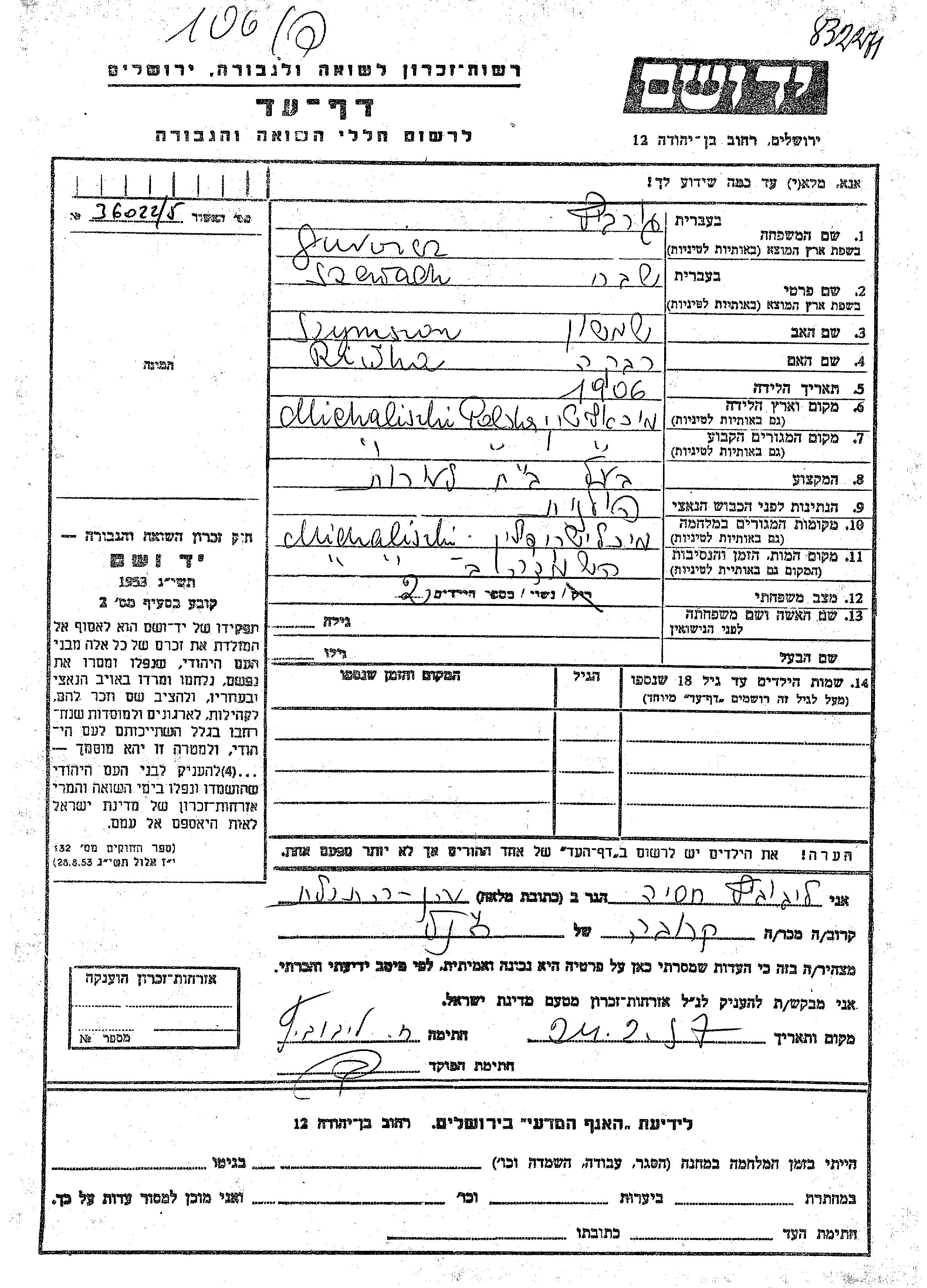 Gurvicz גורוביץ Szewach 1906 Michaliszki, פולין דף-עד