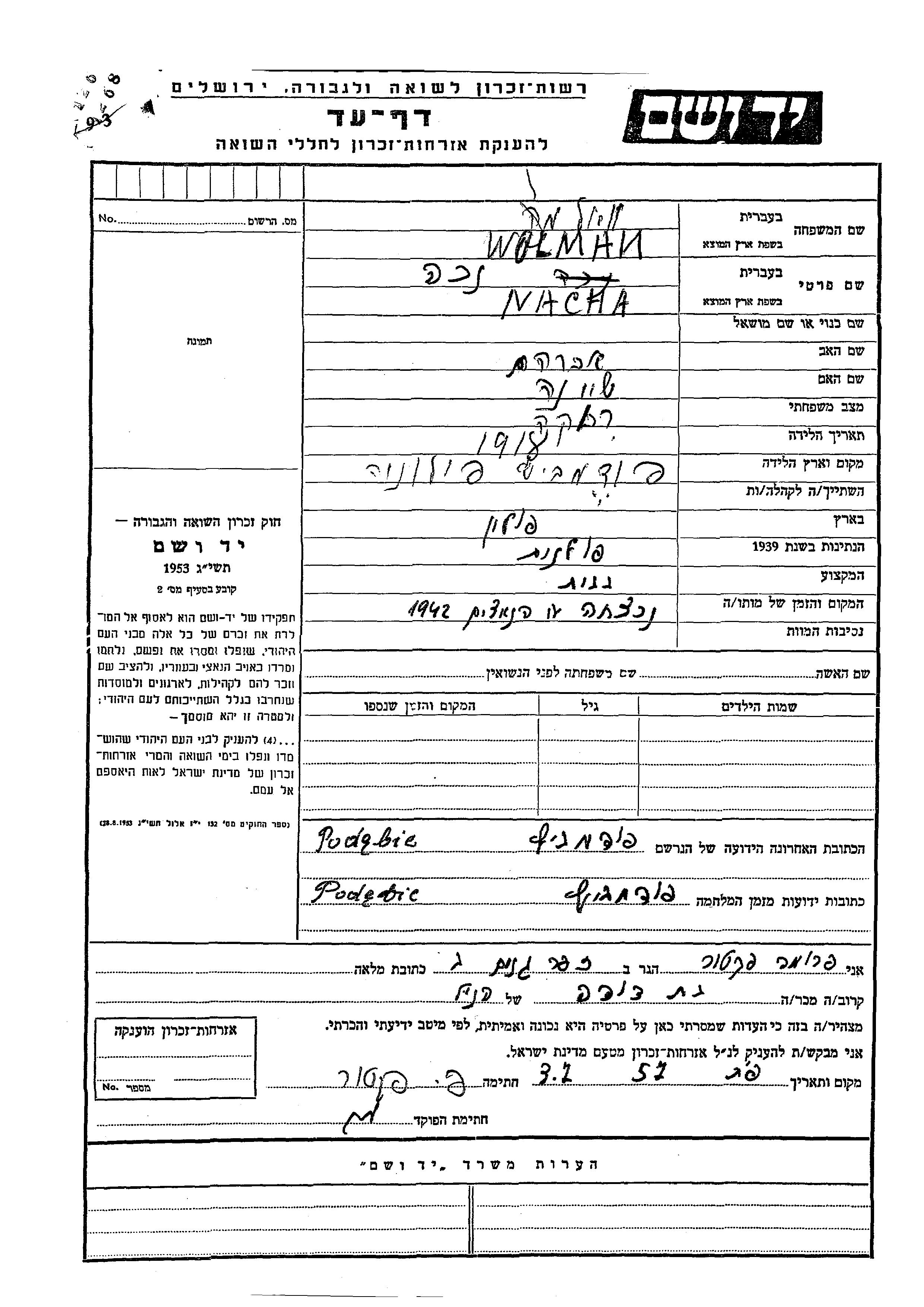 Wolman Nacha 1918 Podebice, פולין דף-עד
