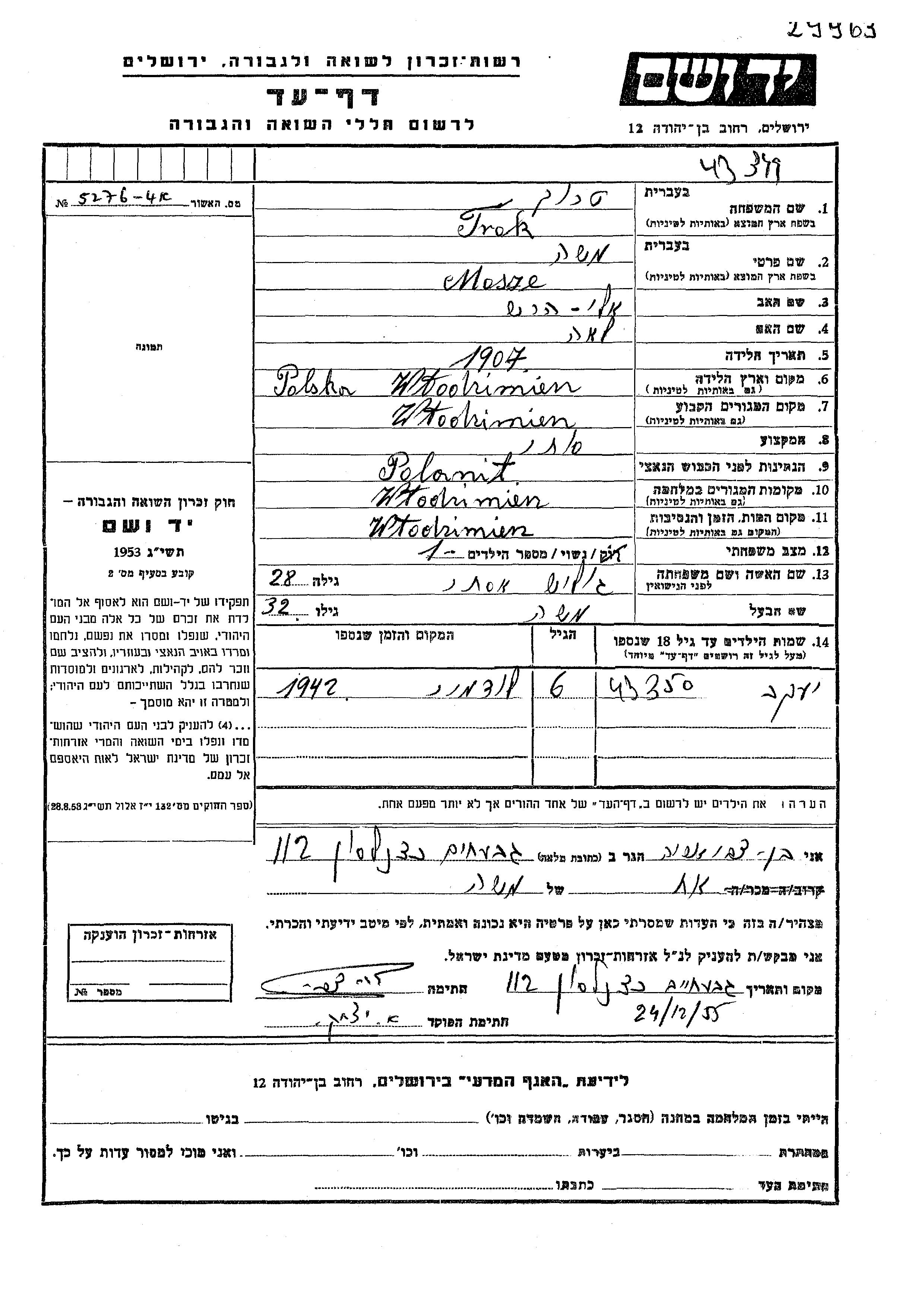 יד ושם - המפעל להנצחת השמות בדפי עד