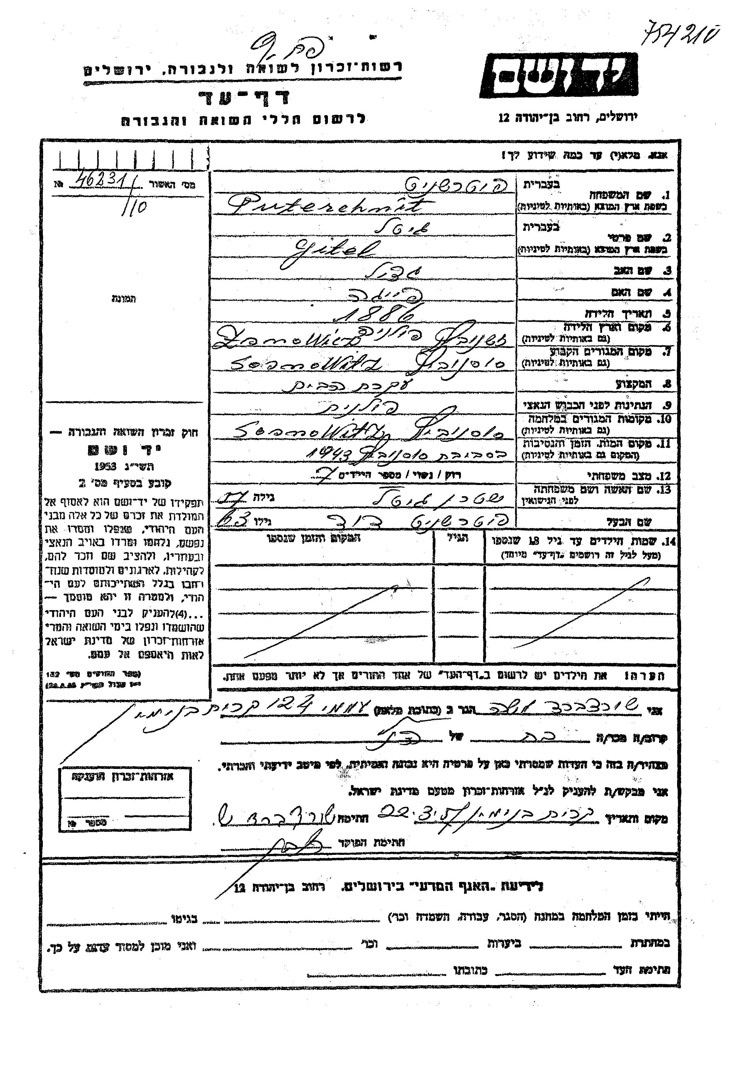 עיר/כפר, גטו/מחנה או אתר רצח או מחוז/אזור או מדינה. שם מקום ניתן לחפש רק בא-ב לטיני.