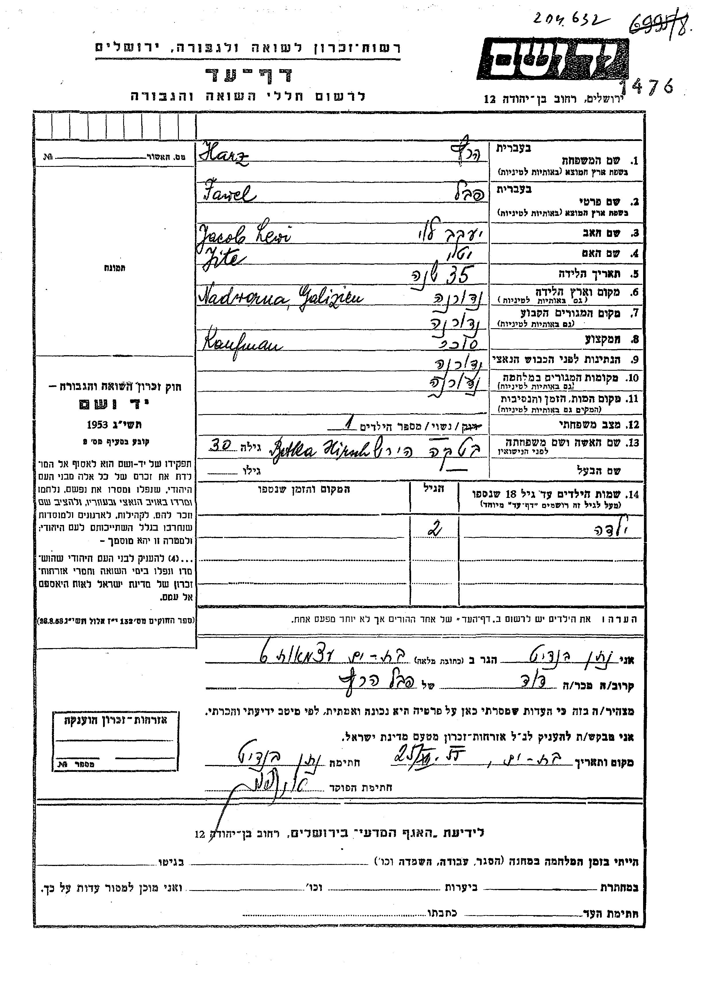 יד ושם - המפעל להנצחת השמות בדפי עד