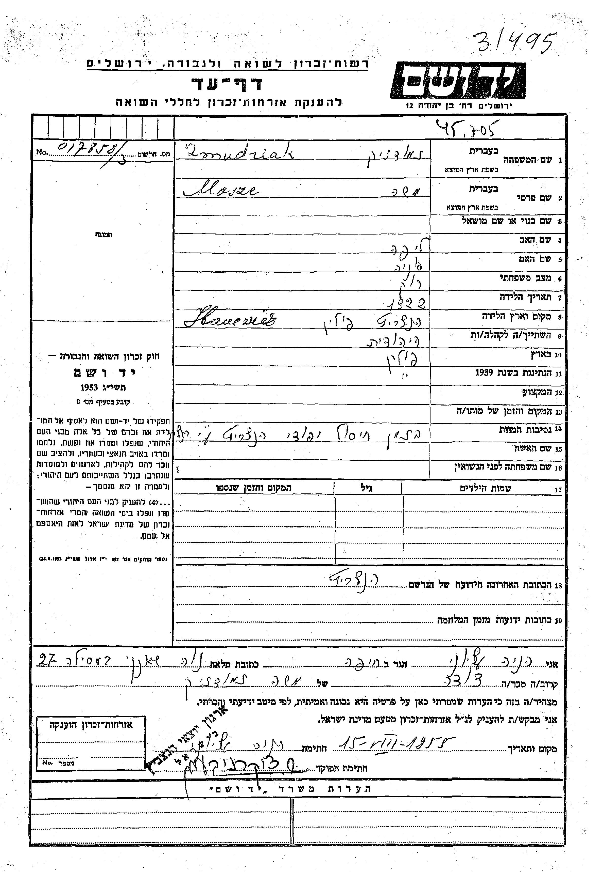 Zmudziak Mosze 1922 Hancewicze, פולין דף-עד