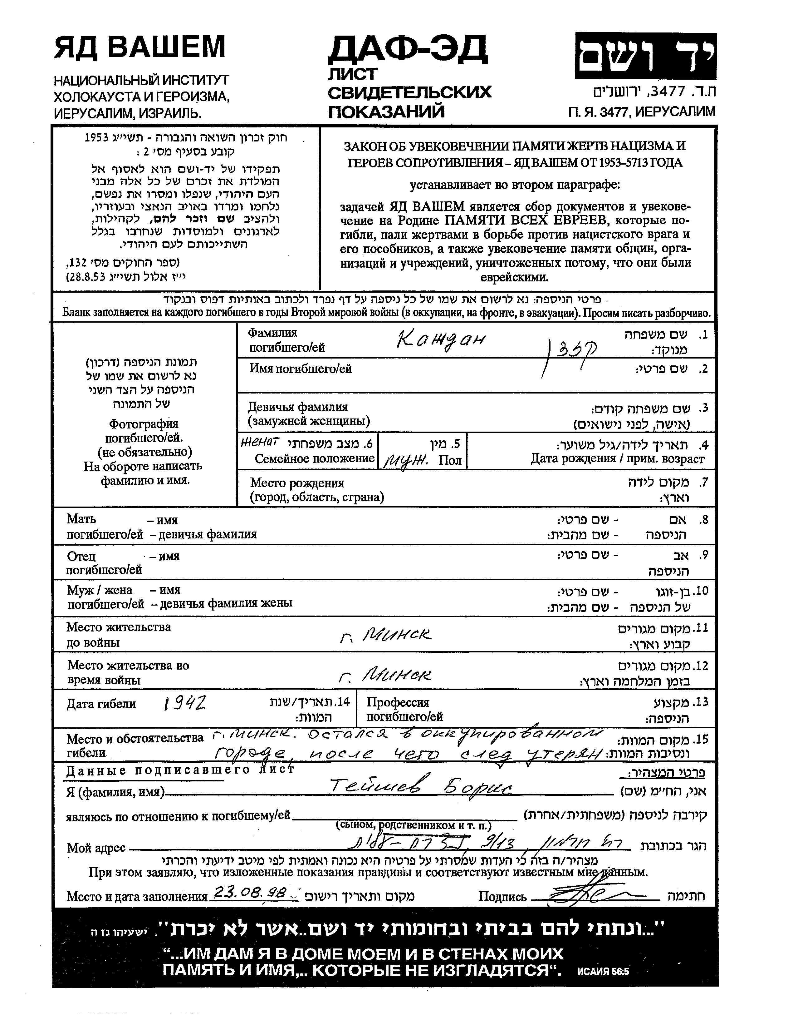 קשדן שם פרטי לא ידוע Minsk, ביאלורוסיה (ברה"מ) דף-עד