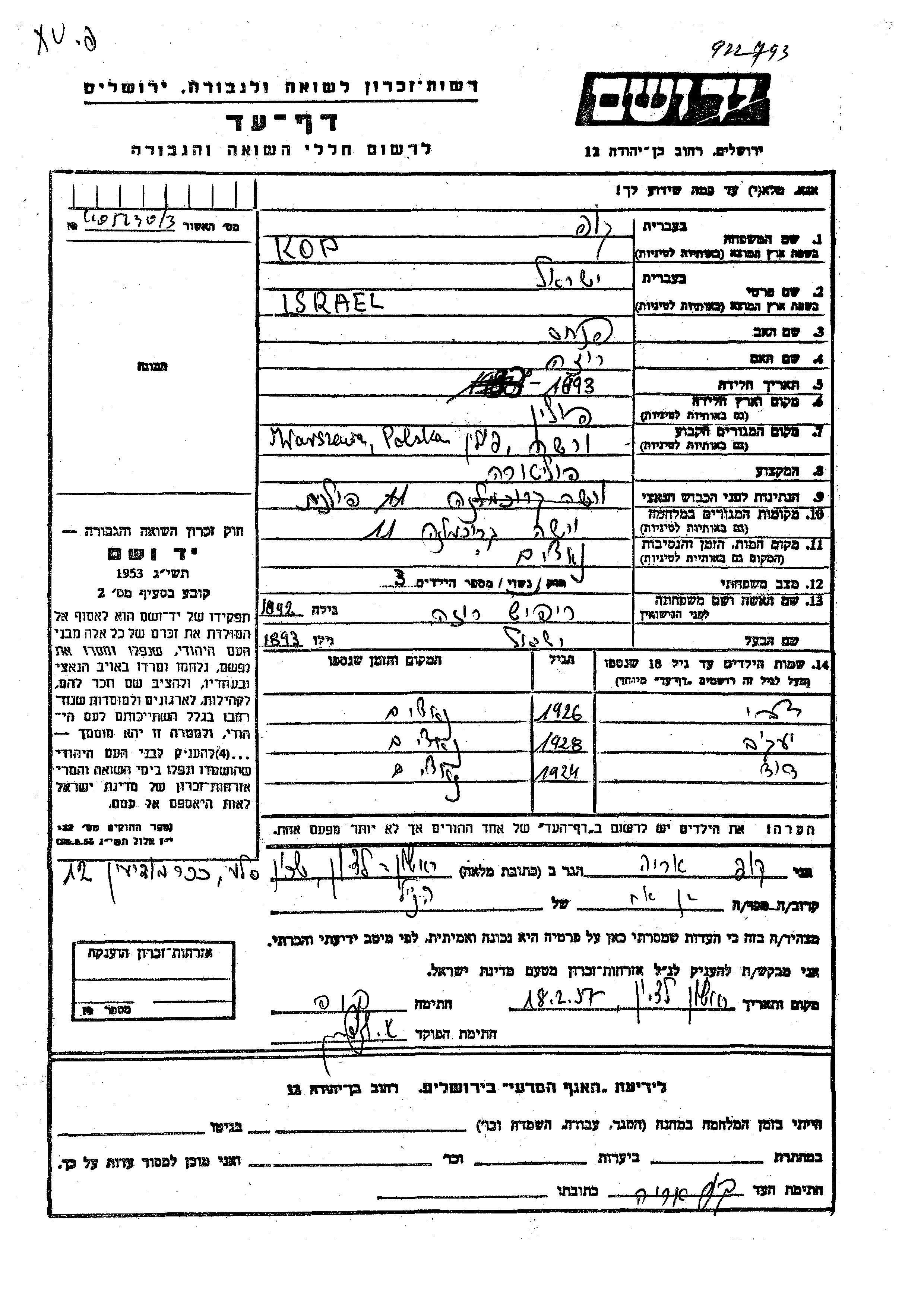 Kop Israel 1893 Warszawa, פולין דף-עד