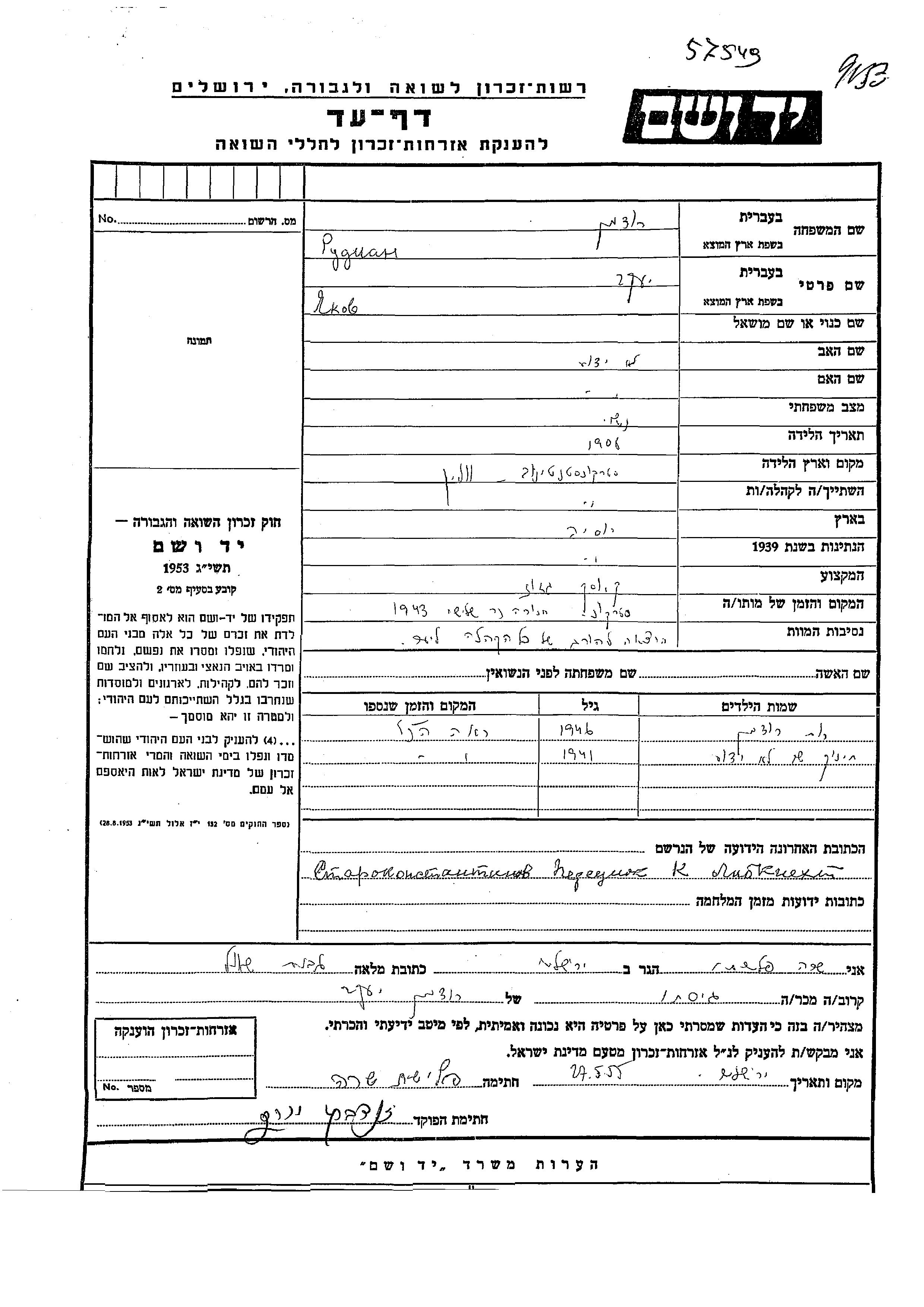 יד ושם - המפעל להנצחת השמות בדפי עד
