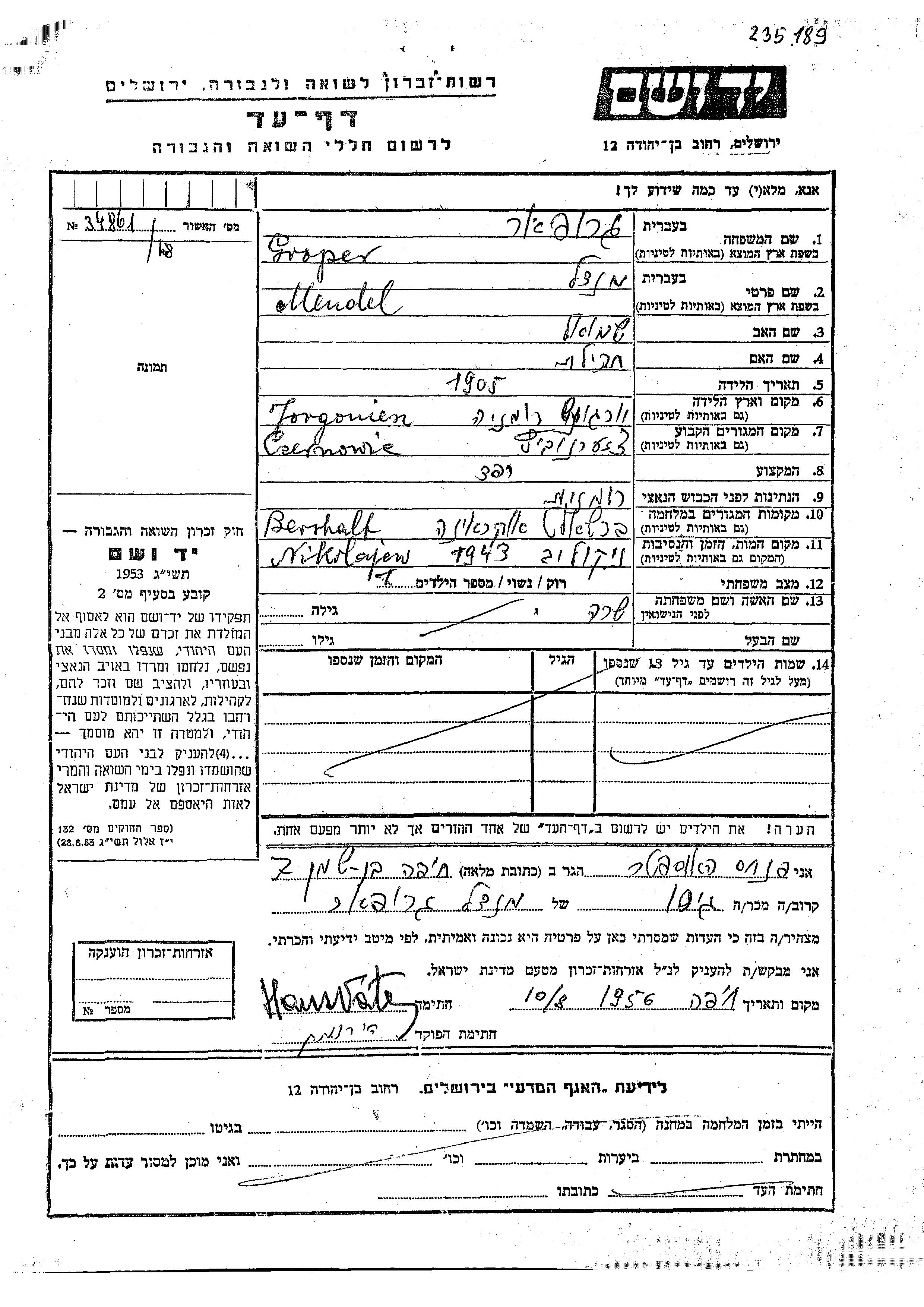 מנדל גרופאר נולד בIordanesti שברומניה בשנת 1905 לשמואל וחבילת. הוא היה רפד ונשוי לשרה. לפני מלחמת העולם השניה התגורר בCzernowiec שברומניה. בזמן המלחמה הוא היה בBershad שבאוקראינה (ברה"מ). מנדל נרצח בשואה. מקום המוות: Nikolayev שבאוקראינה (ברה"מ) בשנת 1943.