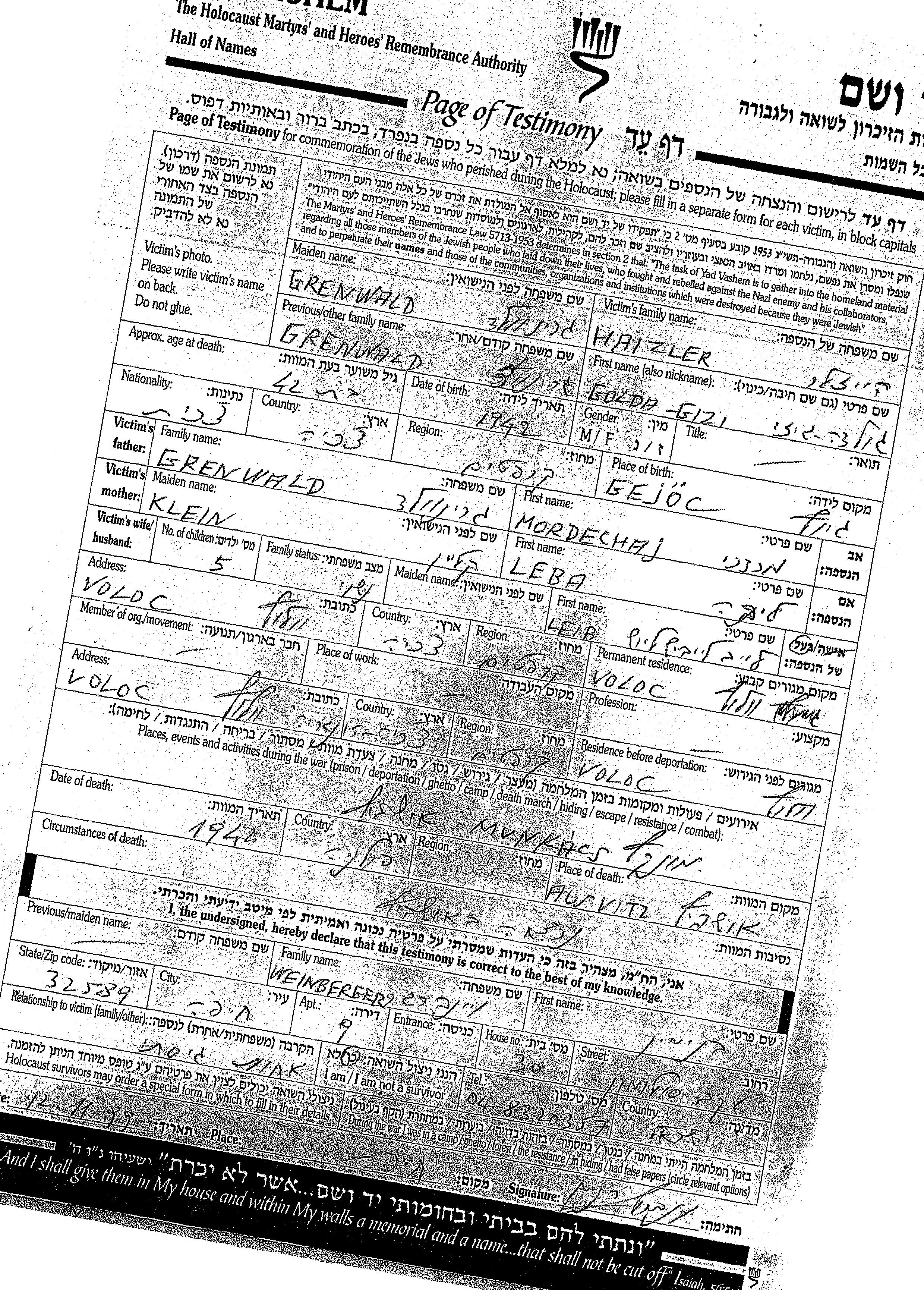 יד ושם - המפעל להנצחת השמות בדפי עד