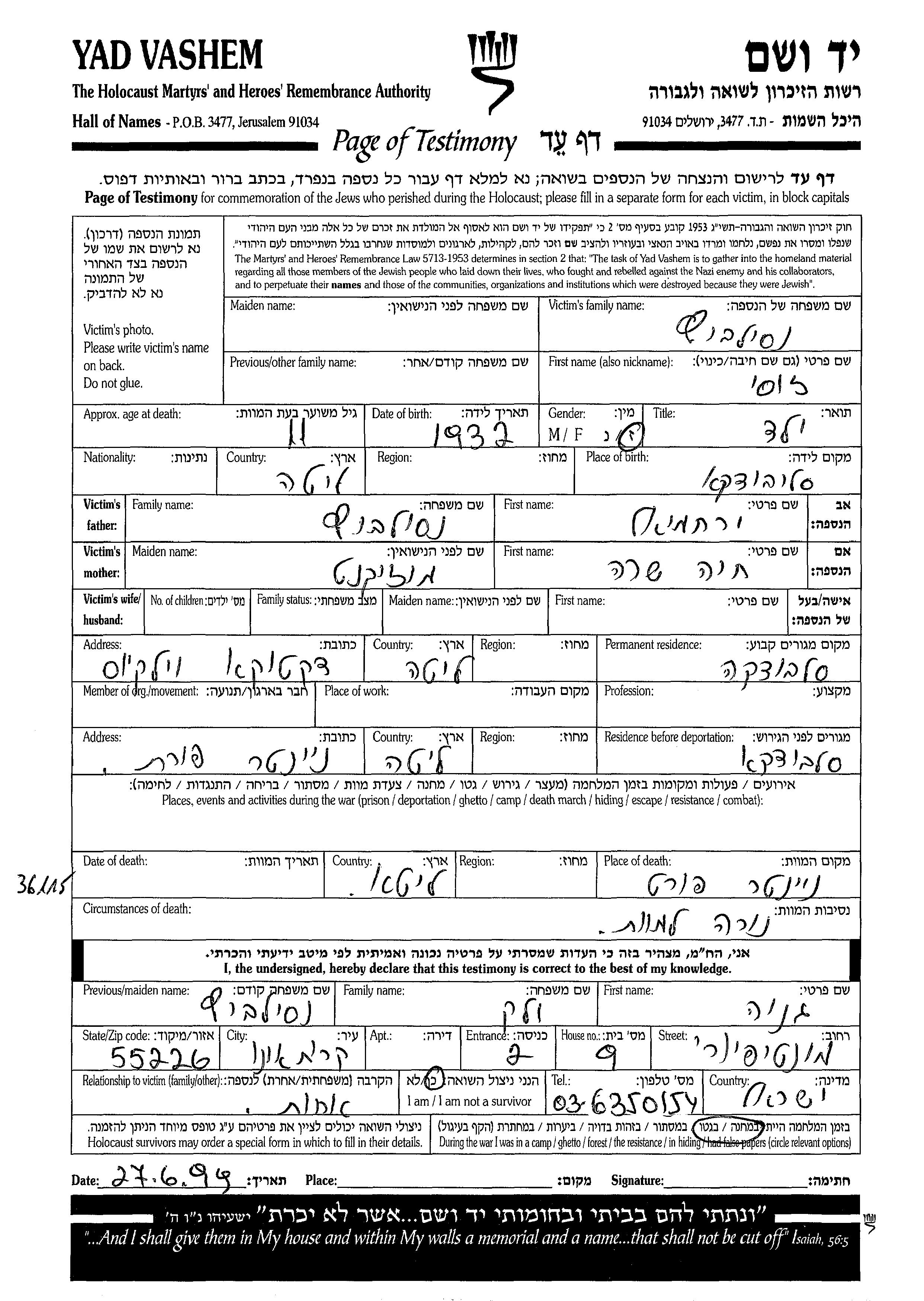 עיר/כפר, גטו/מחנה או אתר רצח או מחוז/אזור או מדינה. שם מקום ניתן לחפש רק בא-ב לטיני.