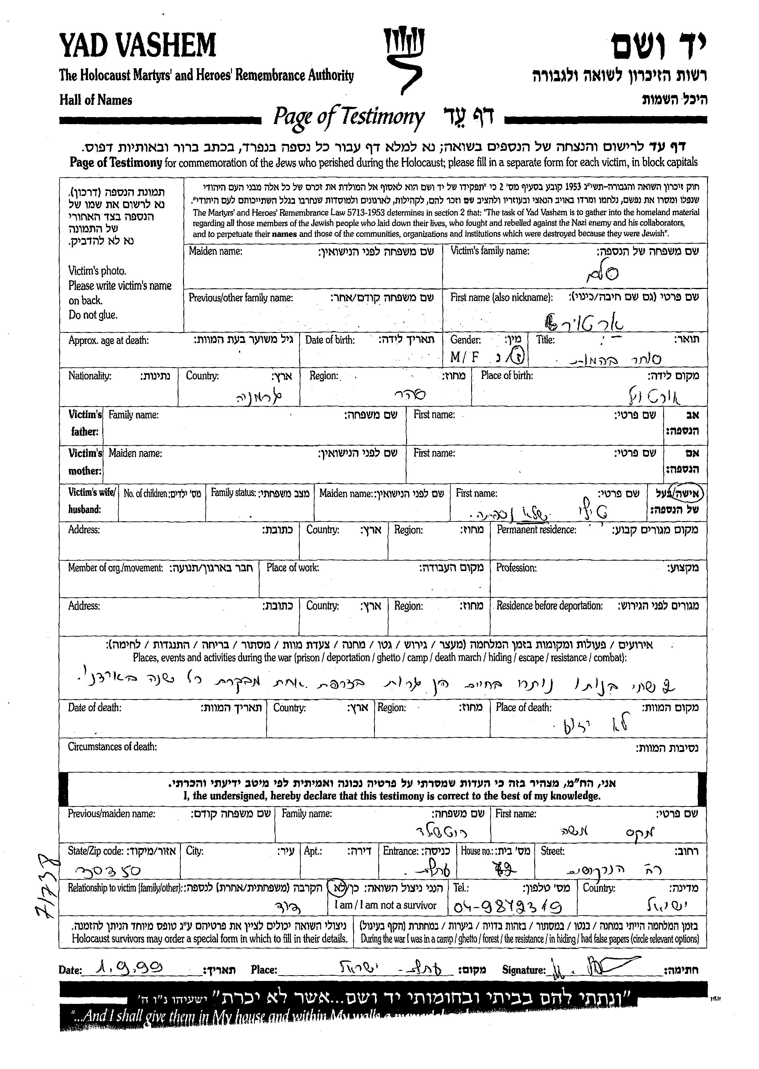 יד ושם - המפעל להנצחת השמות בדפי עד