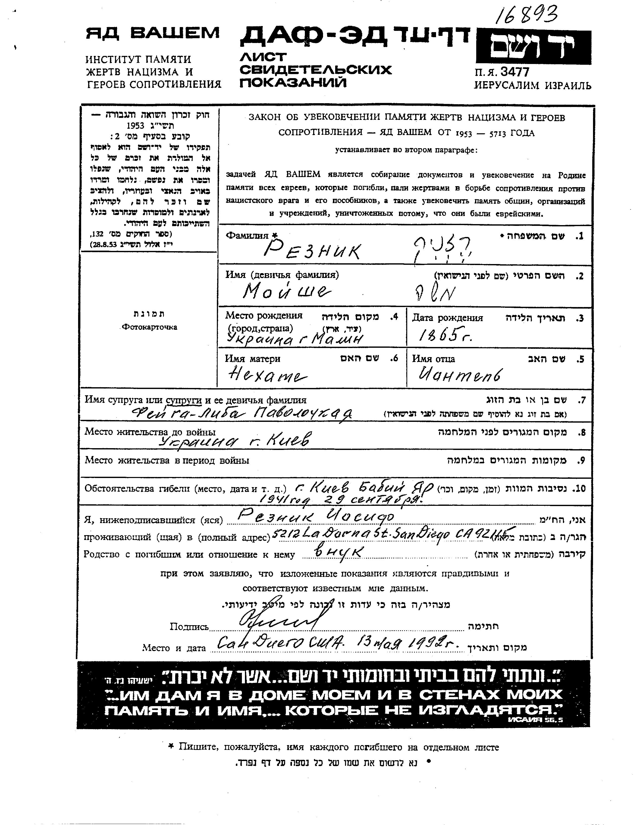 הוא נרצח בשואה. מקום המוות: Babi Yar שבאוקראינה (ברה"מ) בשנת 29/09/1941.