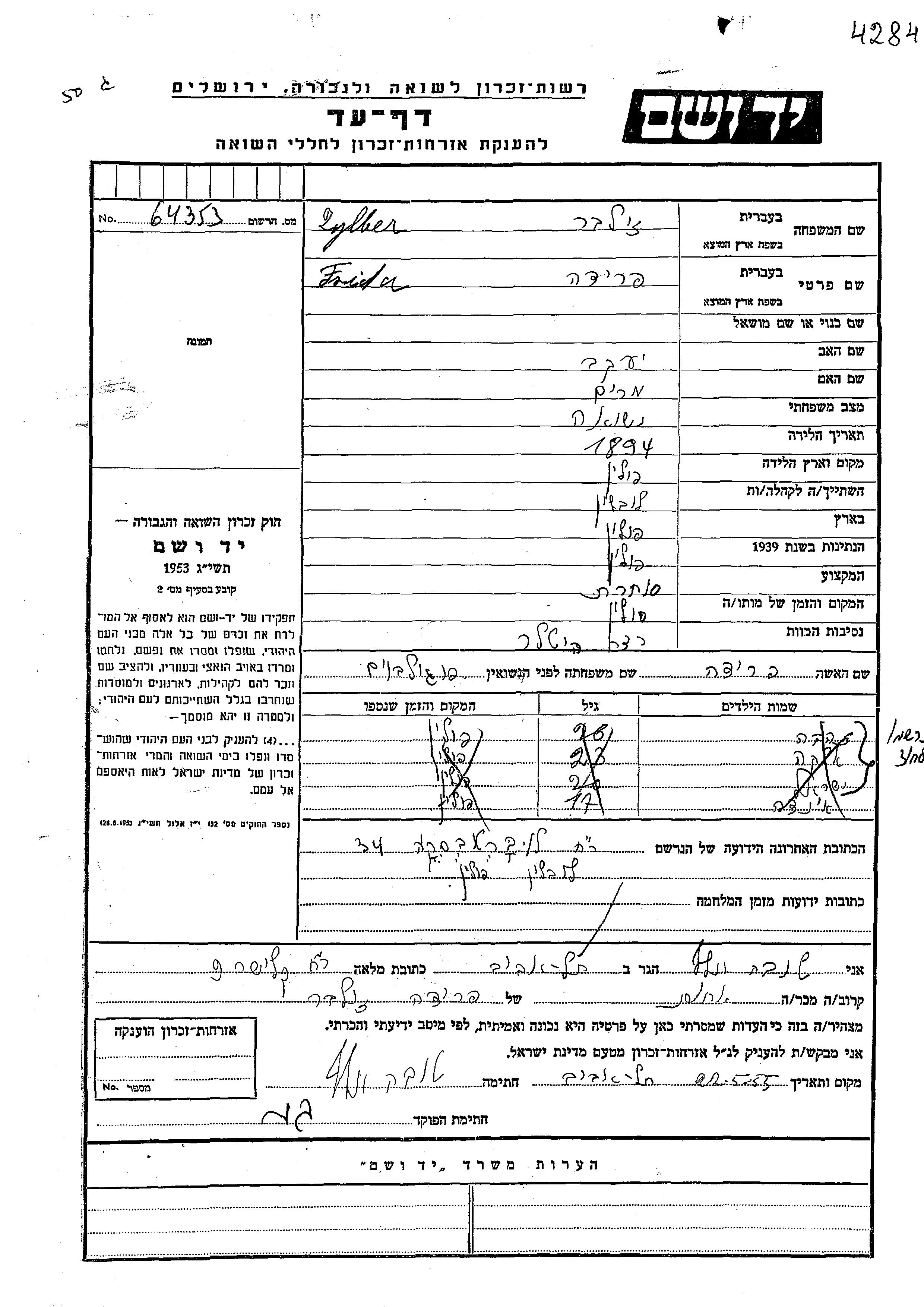 זילבר פרידה 1894 Lublin, פולין דף-עד