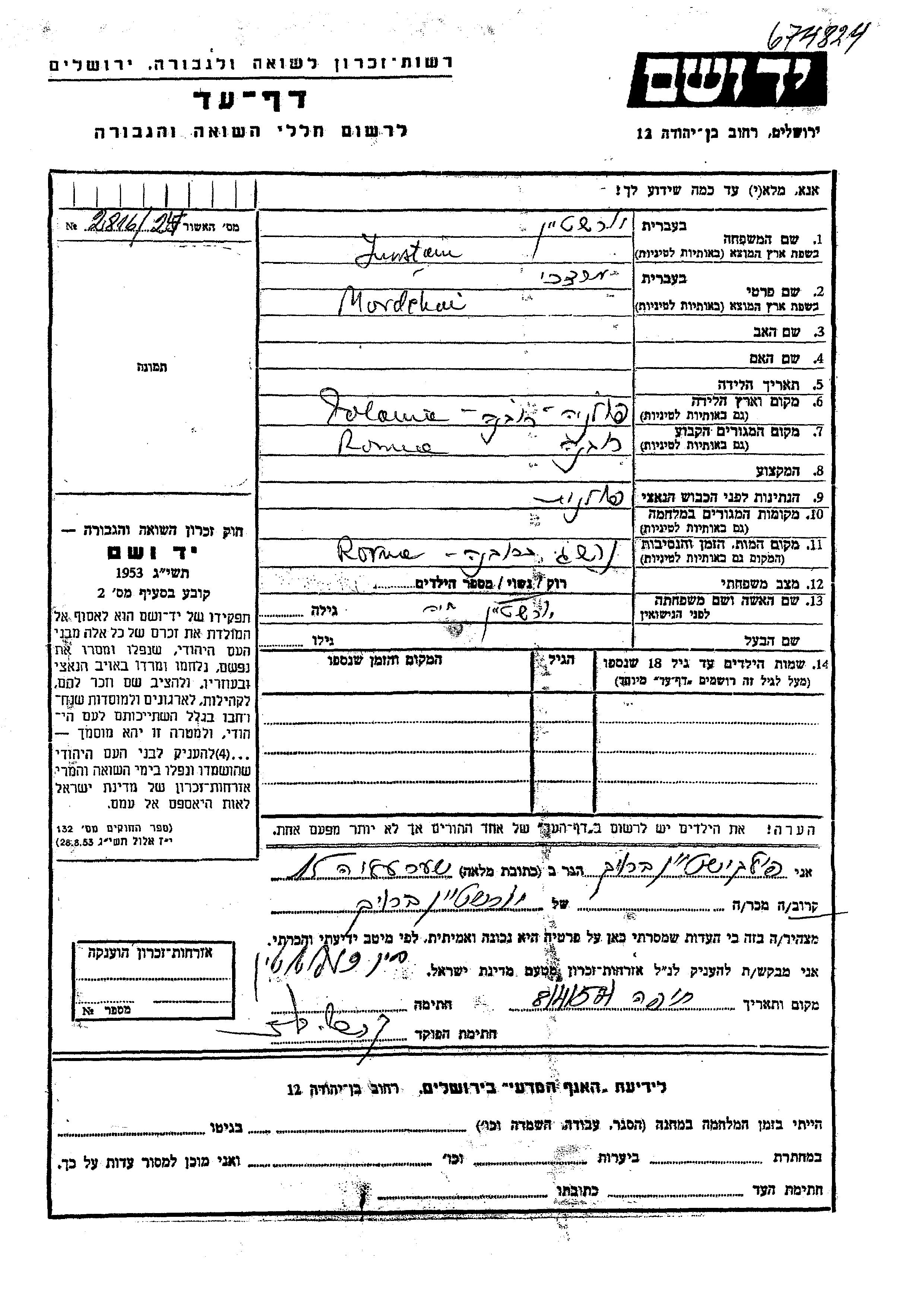 חיפוש שם מוסר דף העד. חיפוש לפי כל שם פרטי, כולל כינוי או שם חיבה