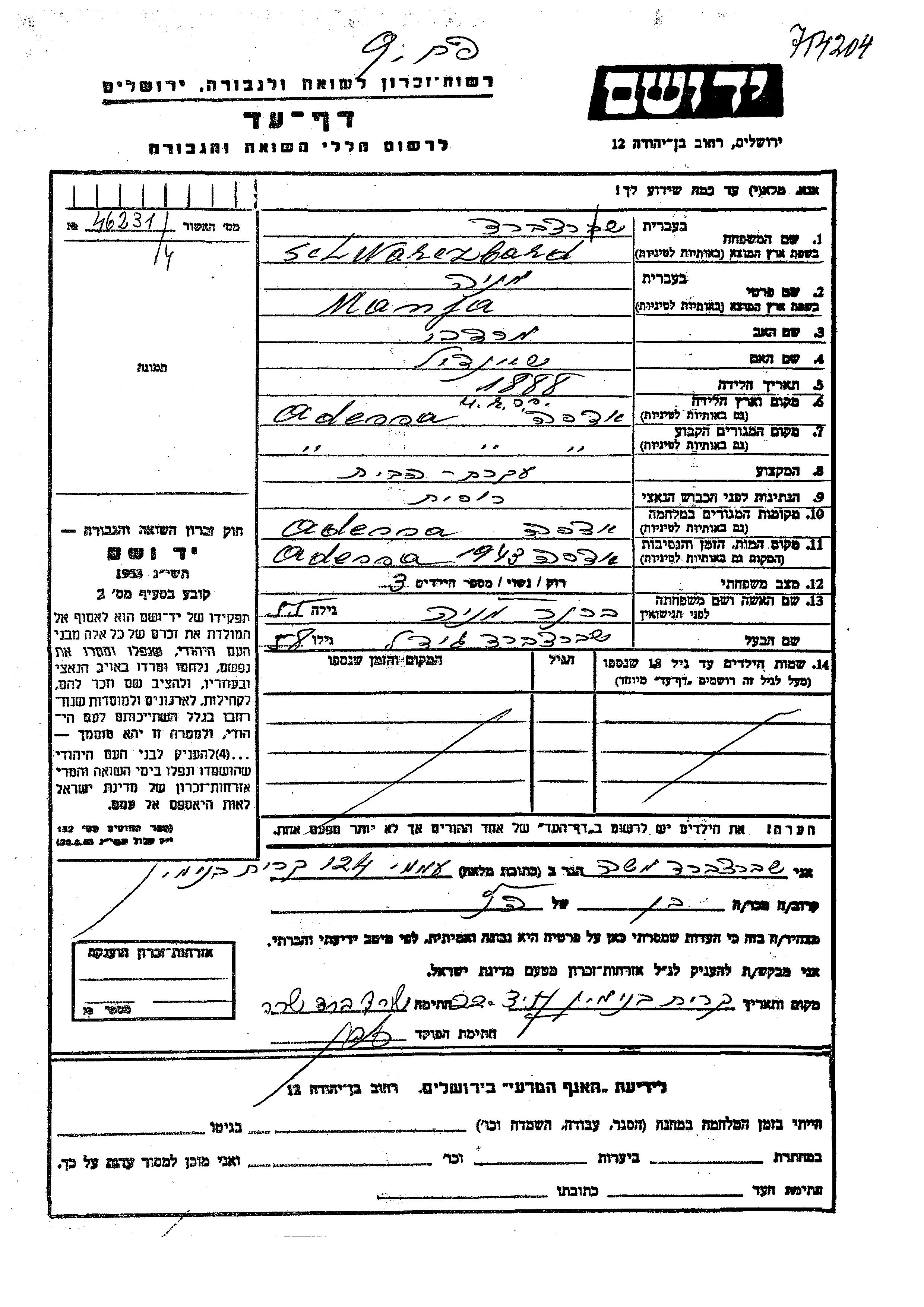 יד ושם - המפעל להנצחת השמות בדפי עד