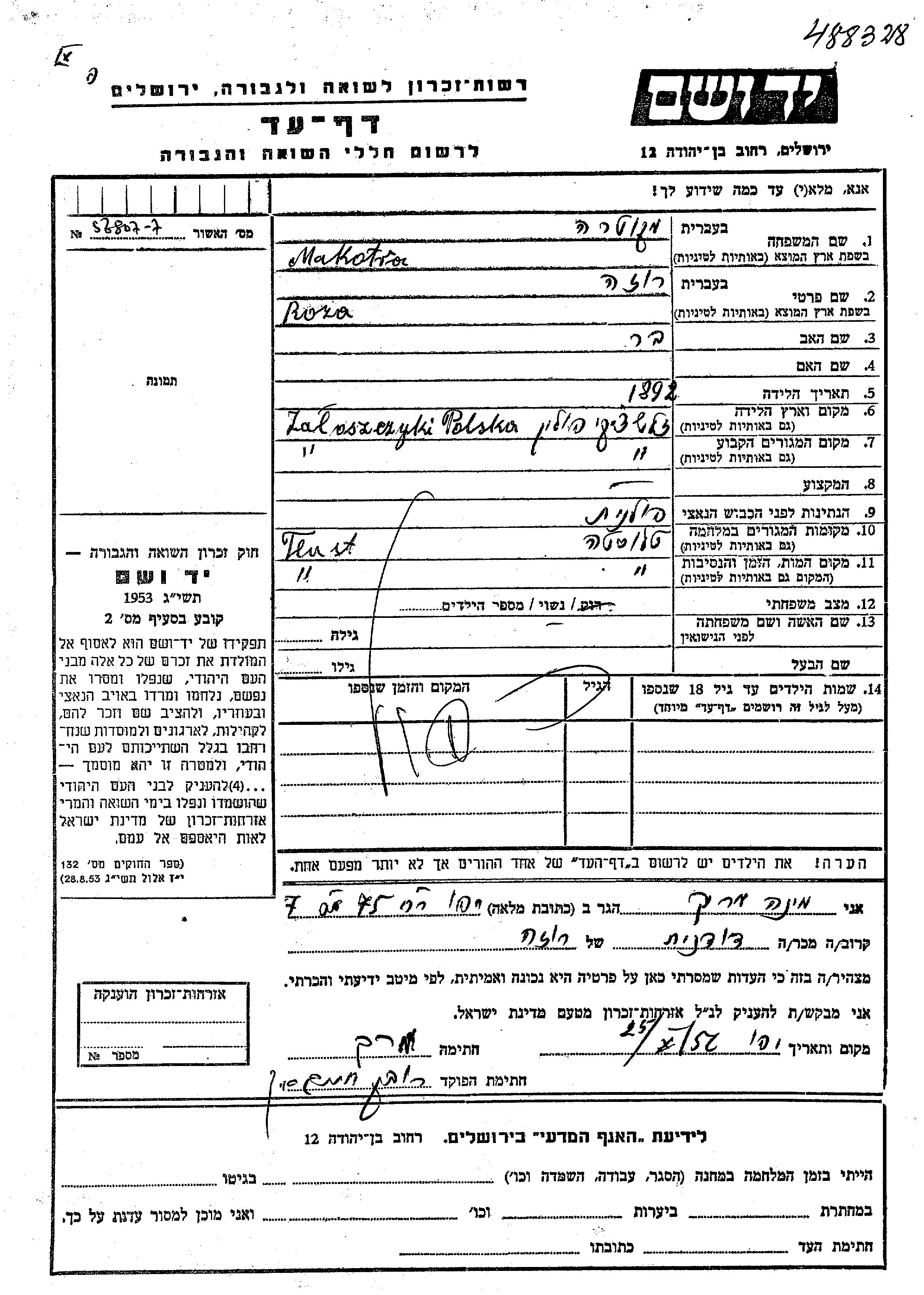 יד ושם - המפעל להנצחת השמות בדפי עד