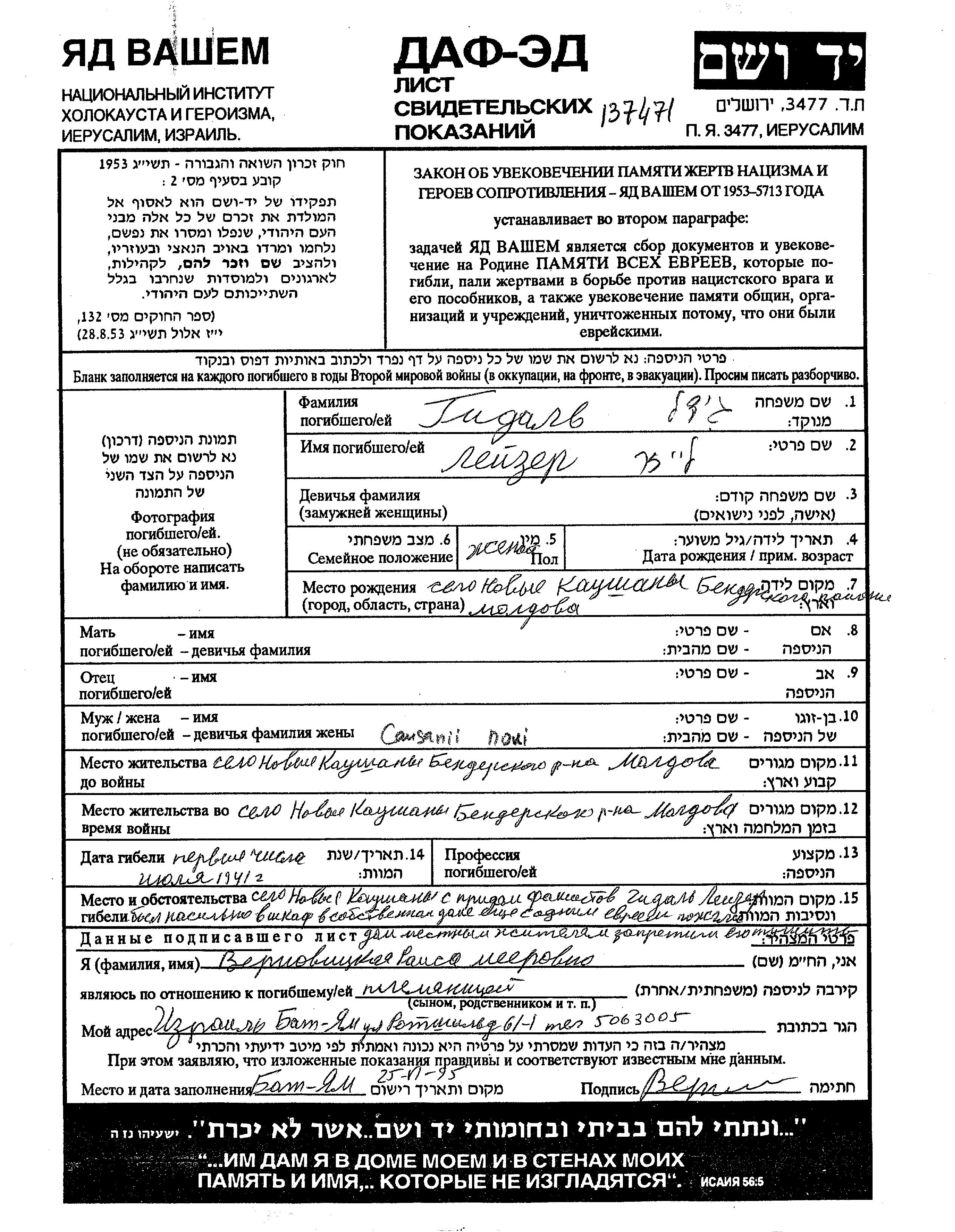 חיפוש שם מוסר דף העד. חיפוש לפי כל שם פרטי, כולל כינוי או שם חיבה