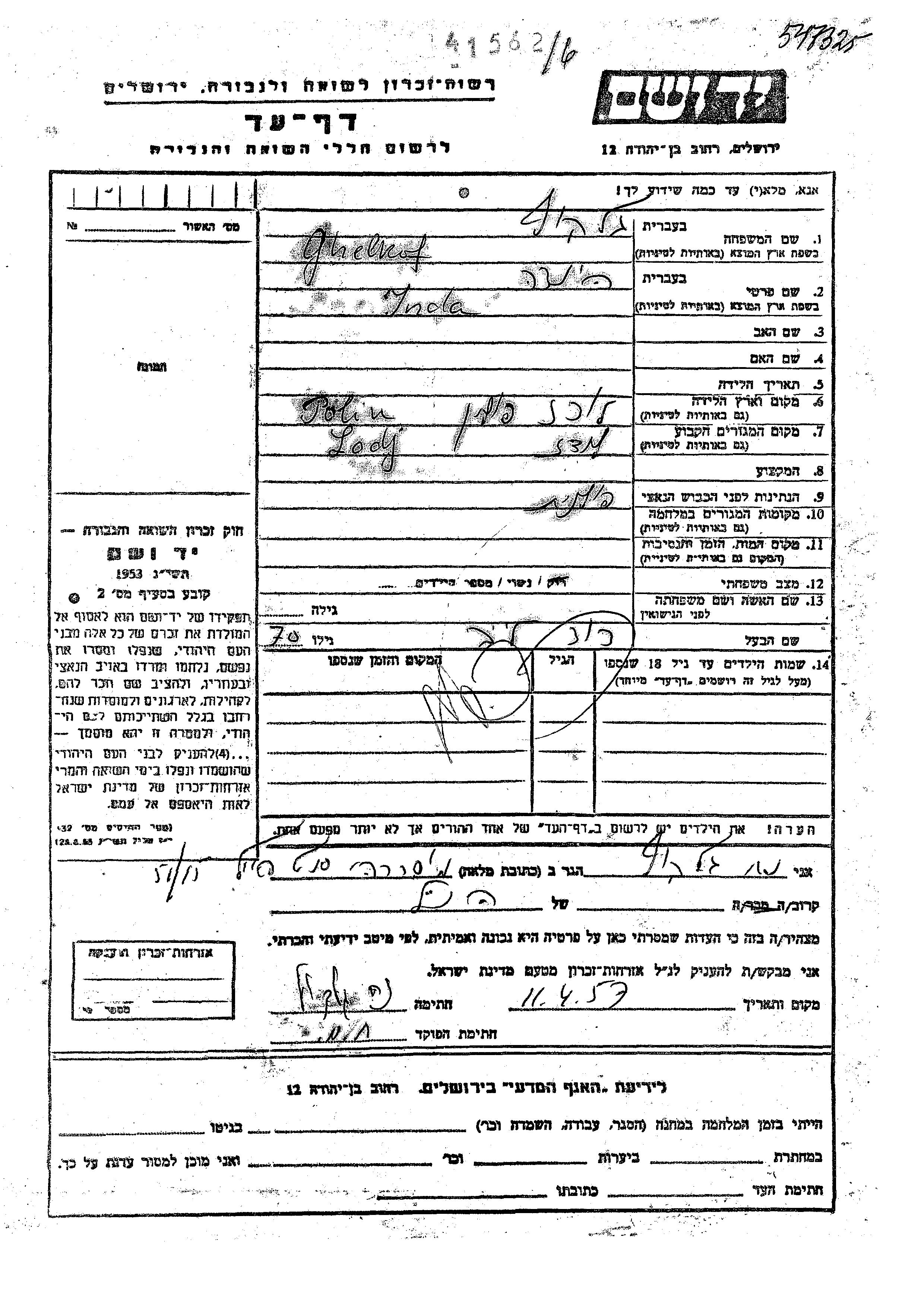 יד ושם - המפעל להנצחת השמות בדפי עד