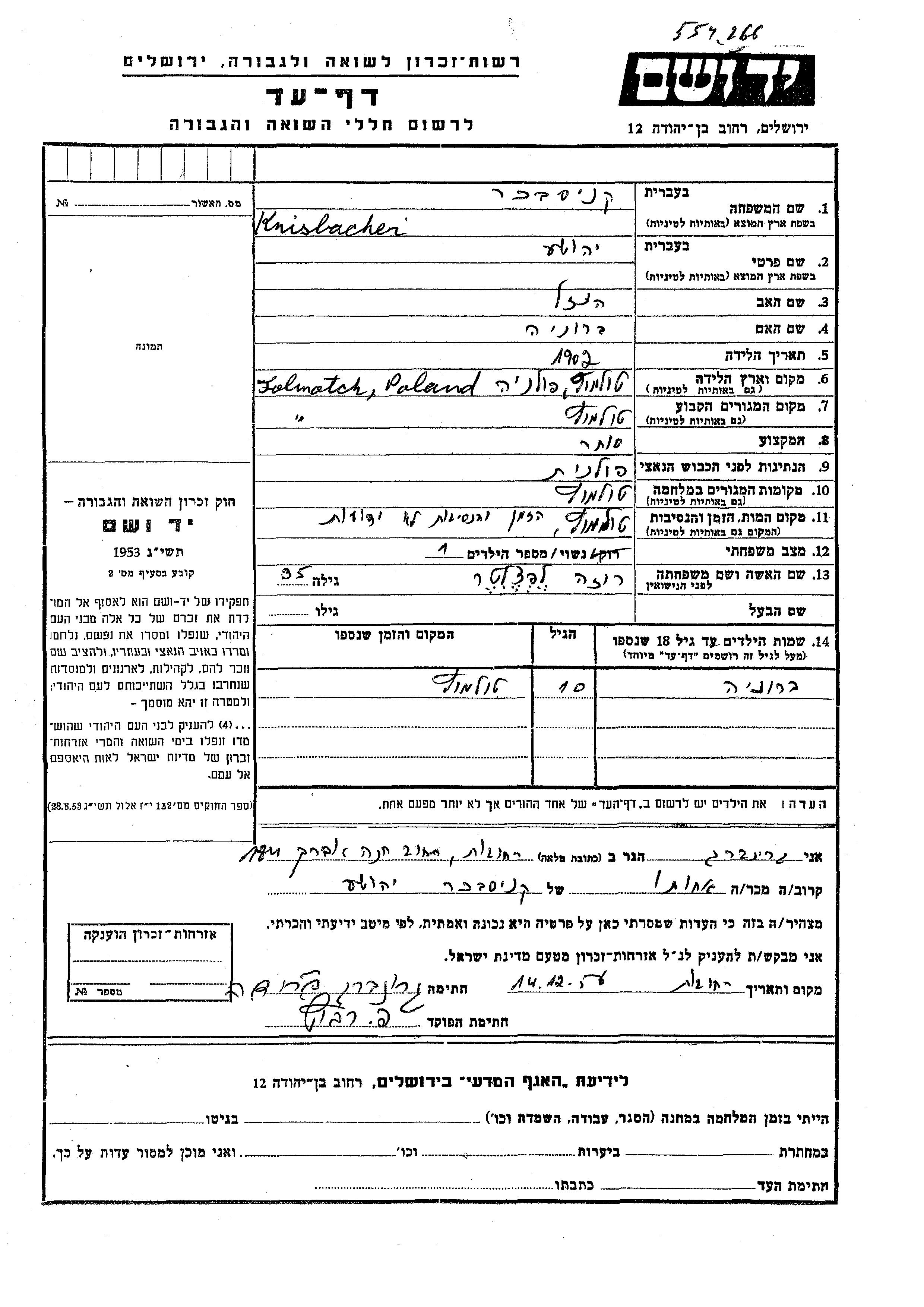 יד ושם - המפעל להנצחת השמות בדפי עד