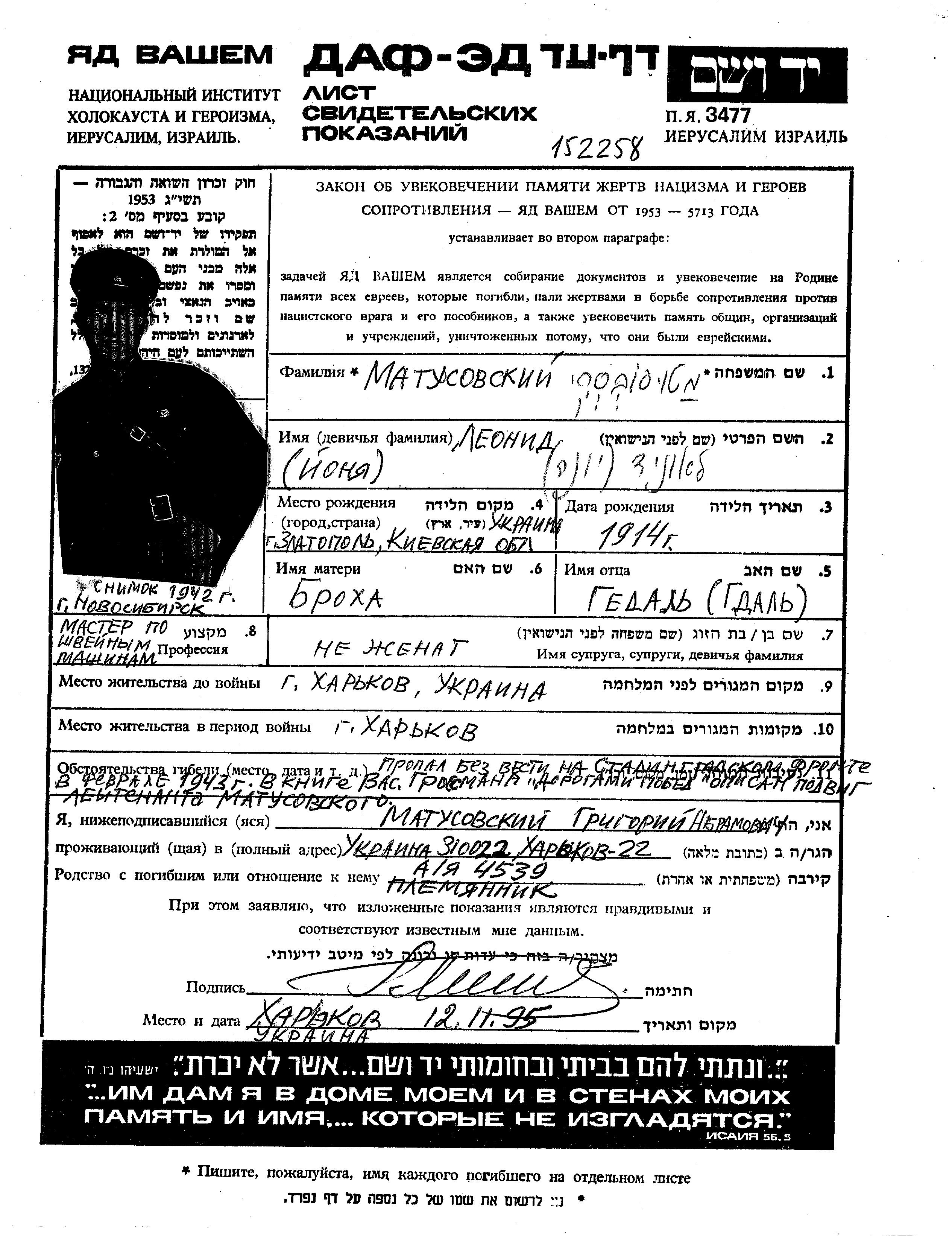 חיפוש שם מוסר דף העד. חיפוש לפי כל שם פרטי, כולל כינוי או שם חיבה