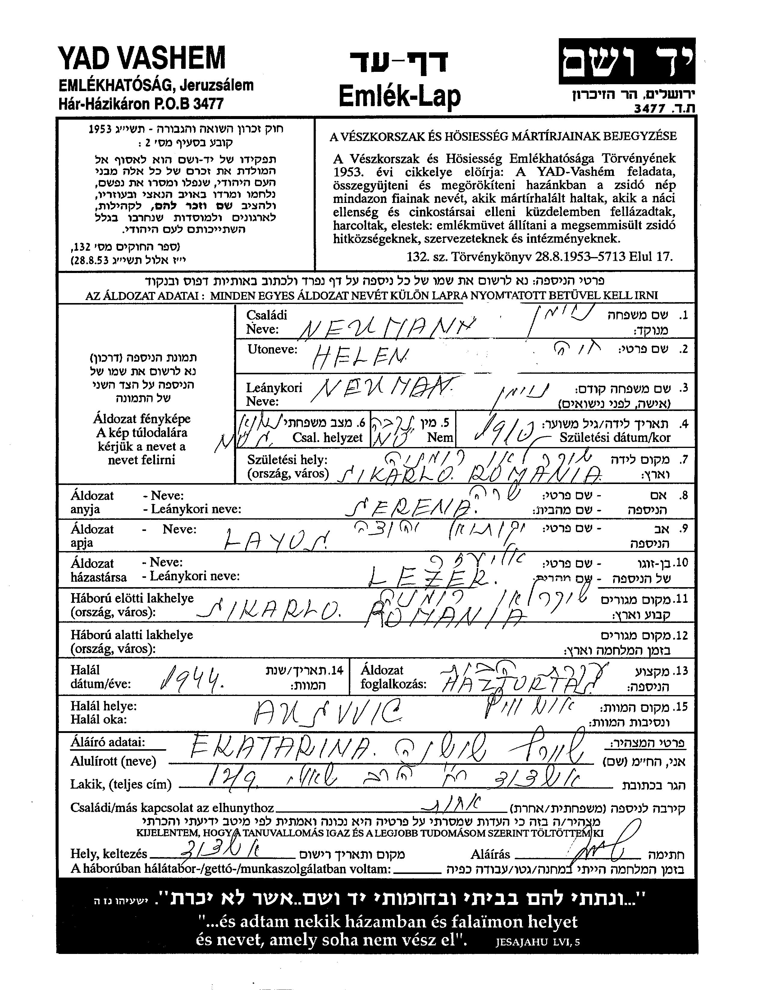 עיר/כפר, גטו/מחנה או אתר רצח או מחוז/אזור או מדינה. שם מקום ניתן לחפש רק בא-ב לטיני.