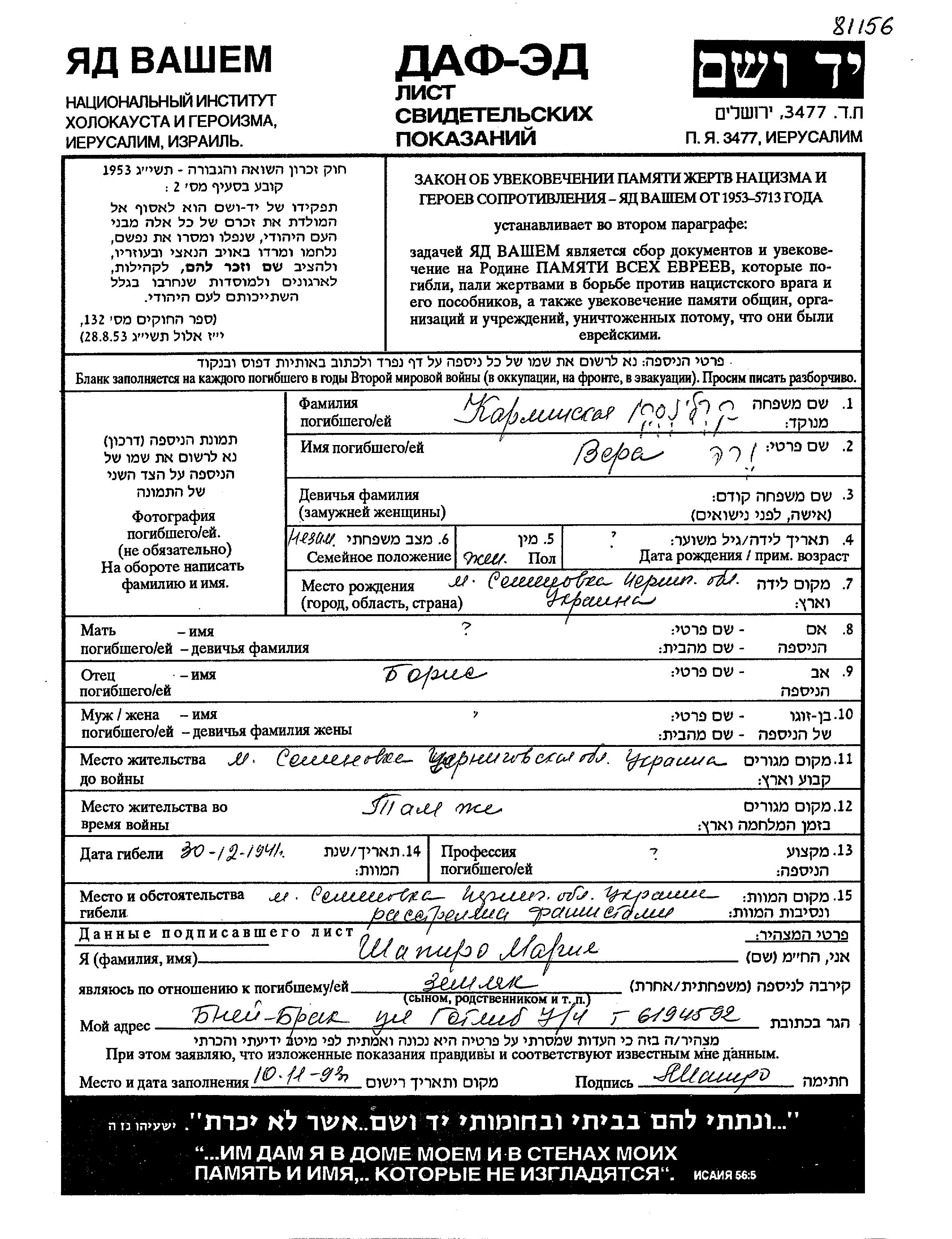 יד ושם - המפעל להנצחת השמות בדפי עד