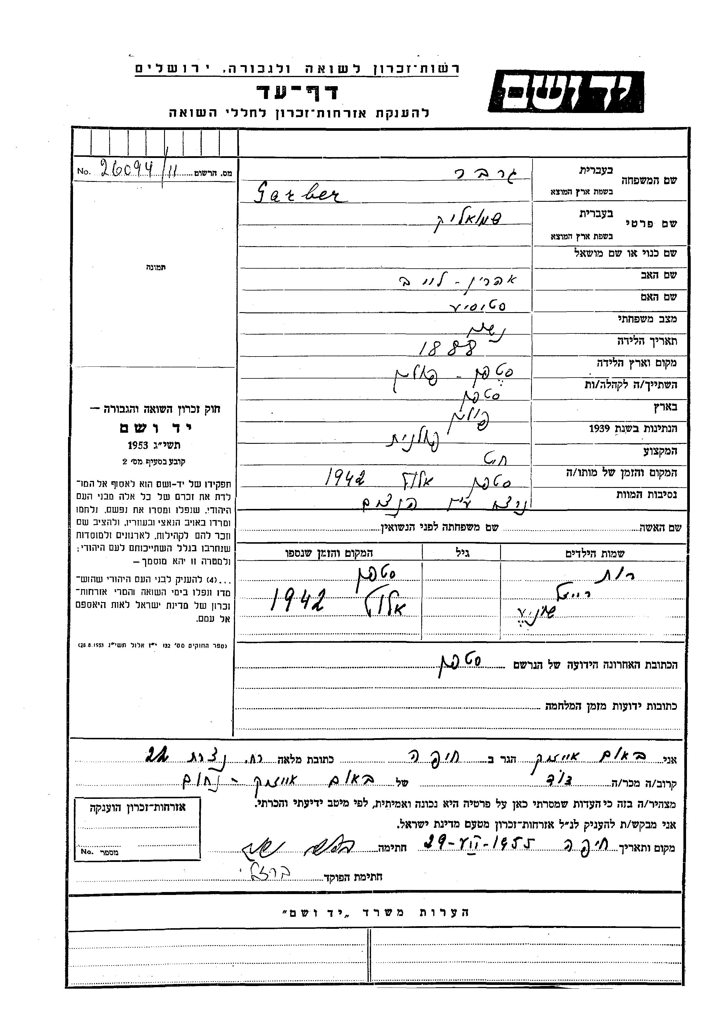 יד ושם - המפעל להנצחת השמות בדפי עד