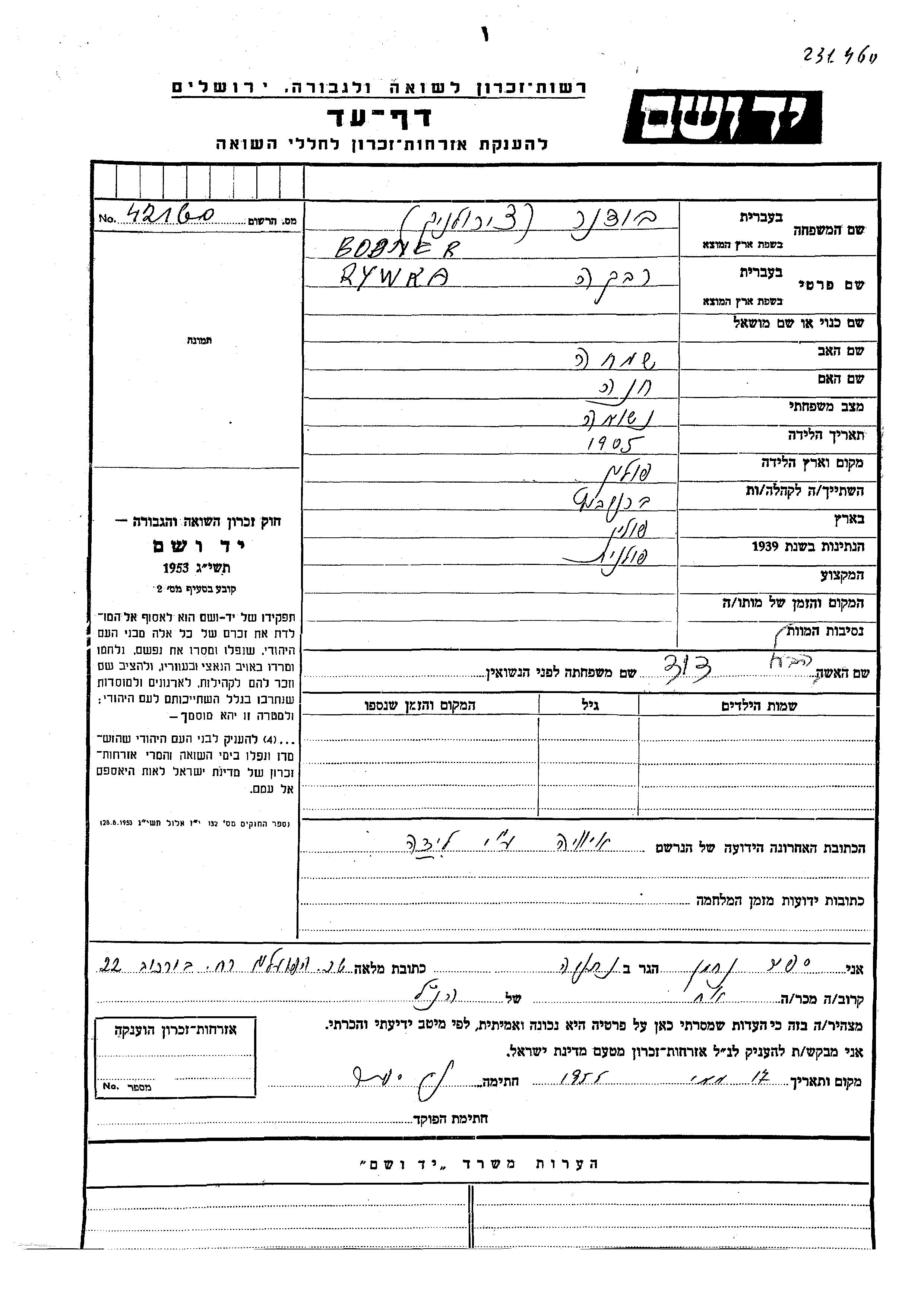 חיפוש שם מוסר דף העד. חיפוש לפי שם משפחה; כולל גם תוצאות חיפוש לפי שם הנעורים של אישה לפני הנישואין