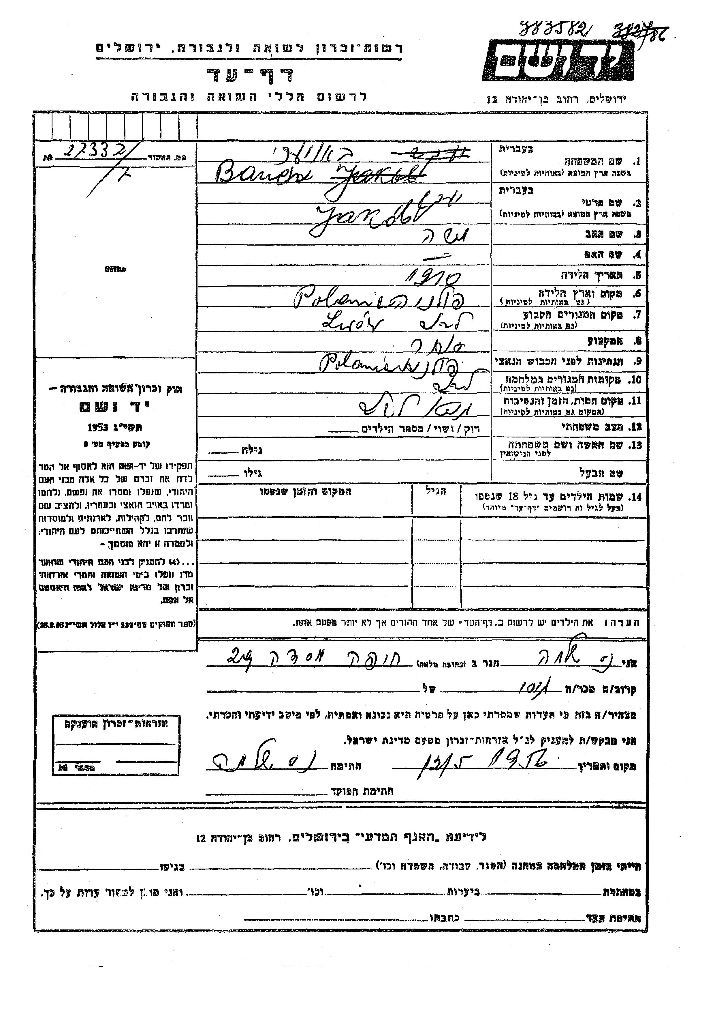 יד ושם - המפעל להנצחת השמות בדפי עד
