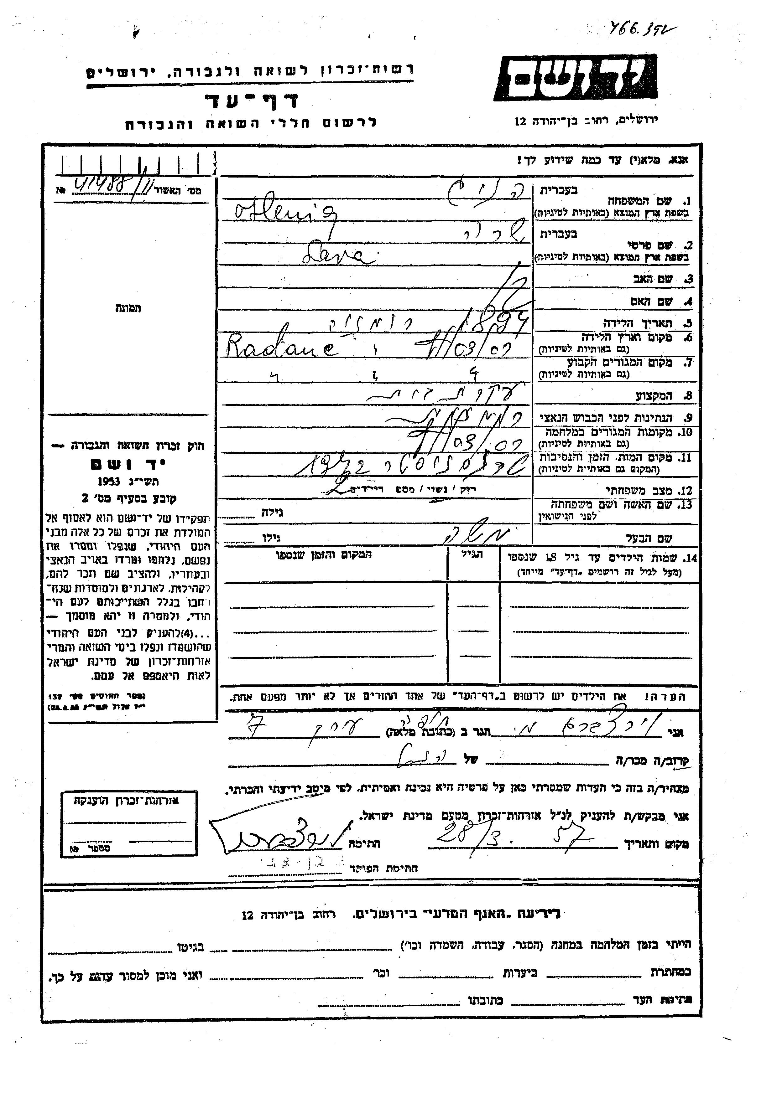 חיפוש שם מוסר דף העד. חיפוש לפי כל שם פרטי, כולל כינוי או שם חיבה
