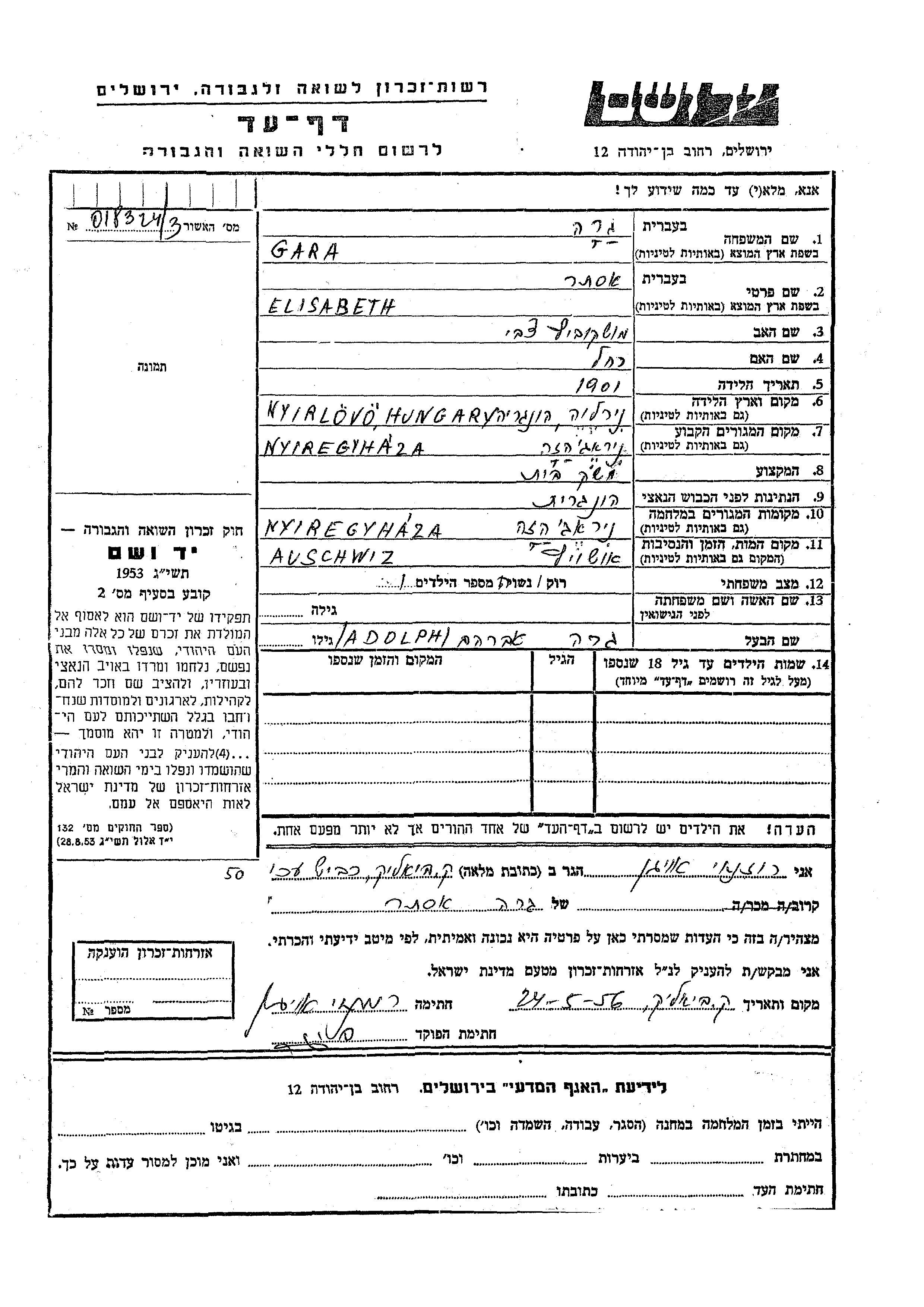 גרה Elisabeth אסתר 1901 Nyiregyhaza, הונגריה דף-עד
