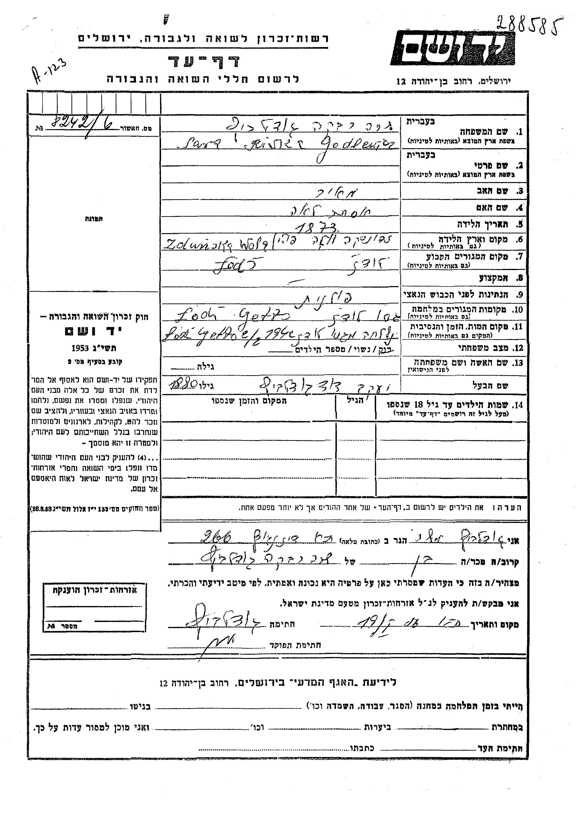 יד ושם - המפעל להנצחת השמות בדפי עד