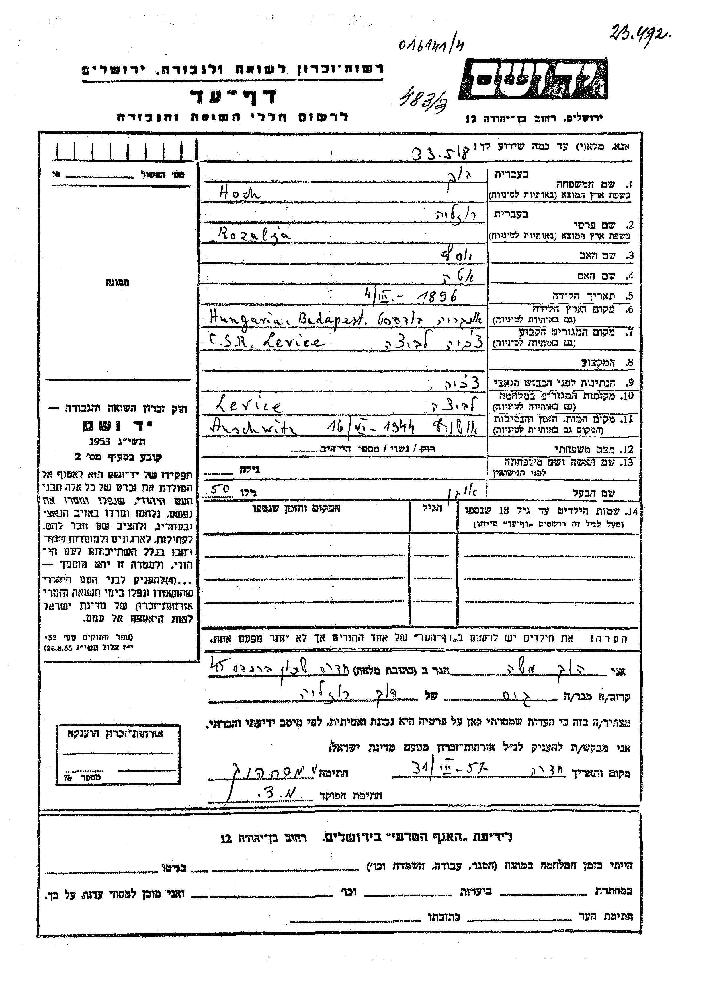 חיפוש שם מוסר דף העד. חיפוש לפי כל שם פרטי, כולל כינוי או שם חיבה