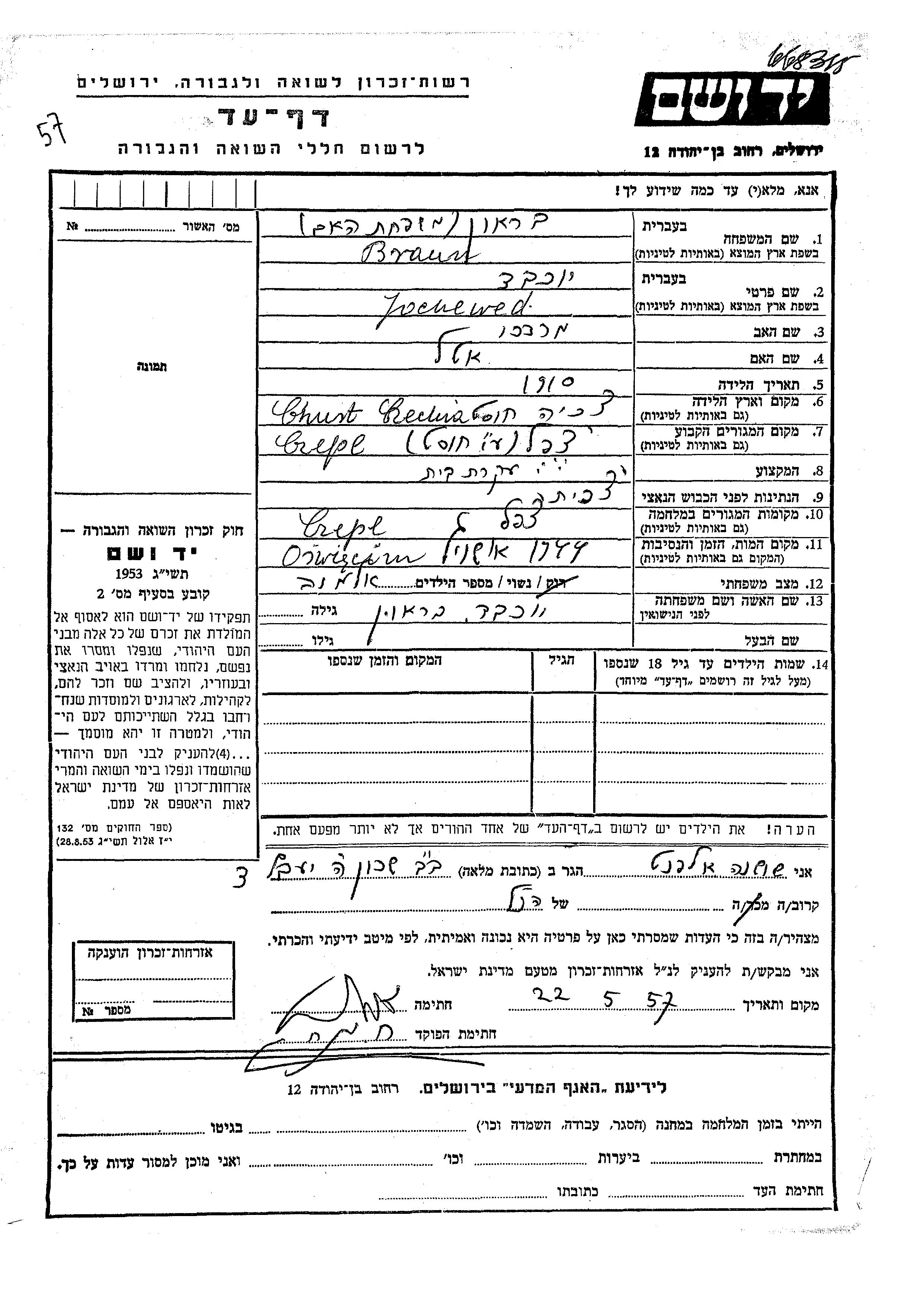 חיפוש שם מוסר דף העד. חיפוש לפי כל שם פרטי, כולל כינוי או שם חיבה