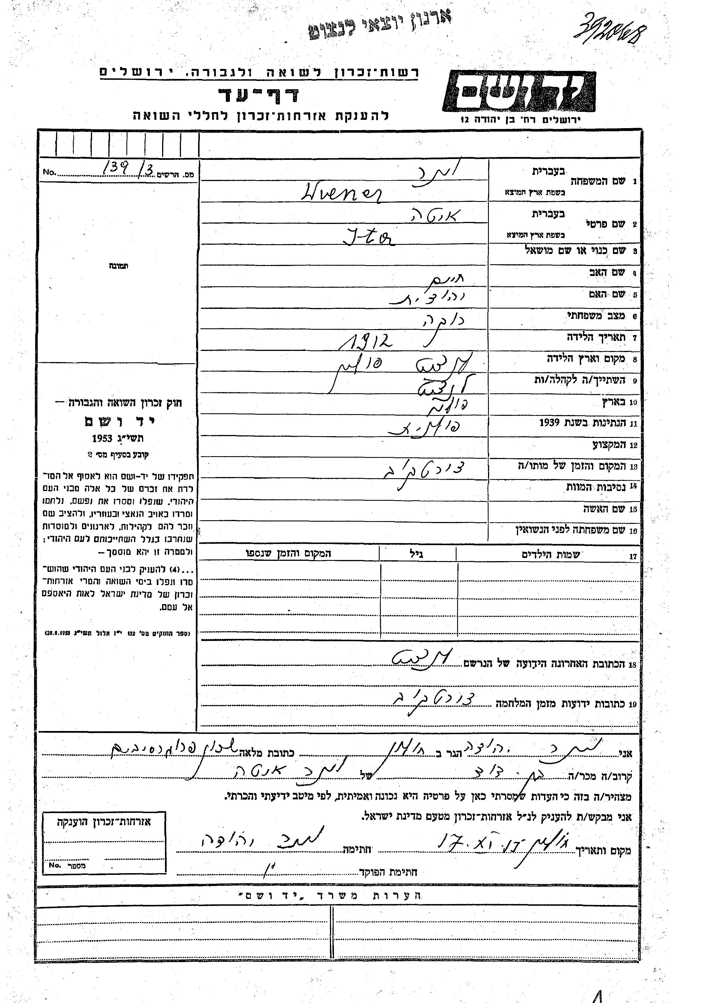 יד ושם - המפעל להנצחת השמות בדפי עד