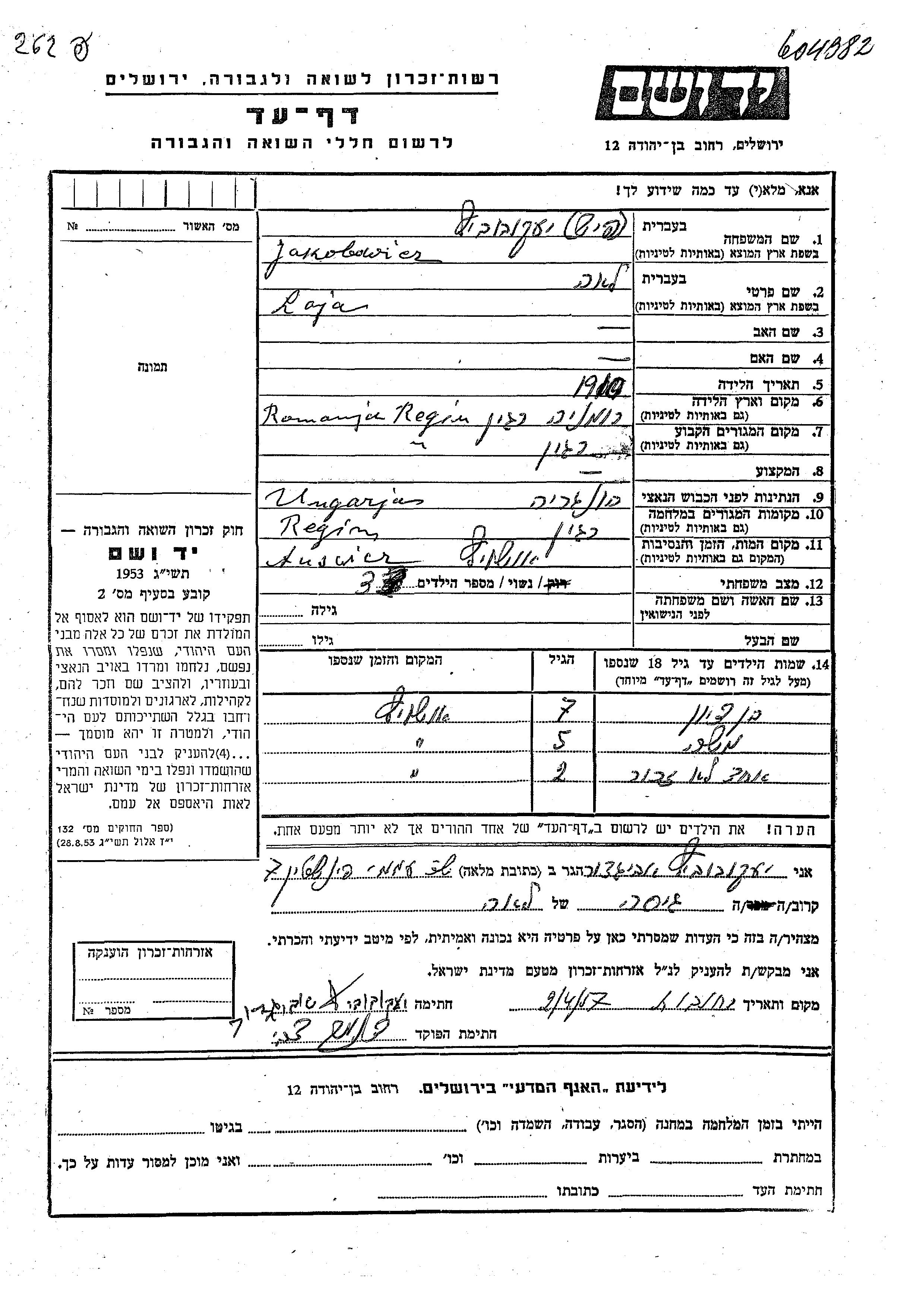 יד ושם - המפעל להנצחת השמות בדפי עד