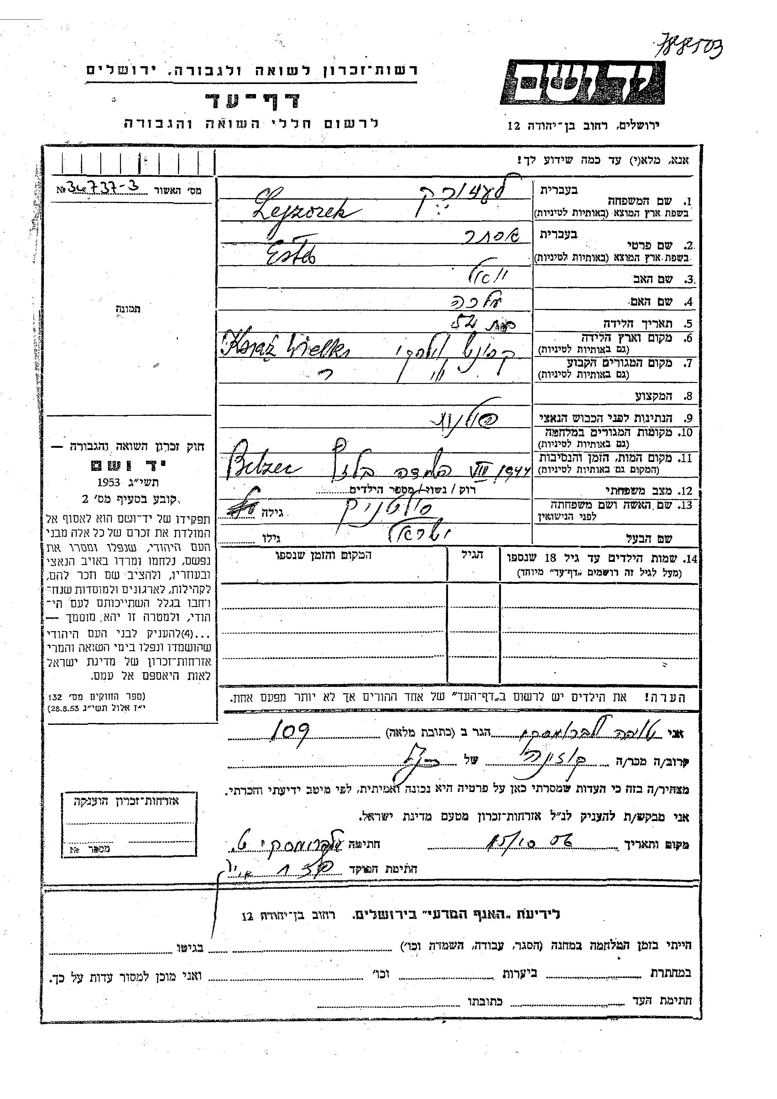 יד ושם - המפעל להנצחת השמות בדפי עד