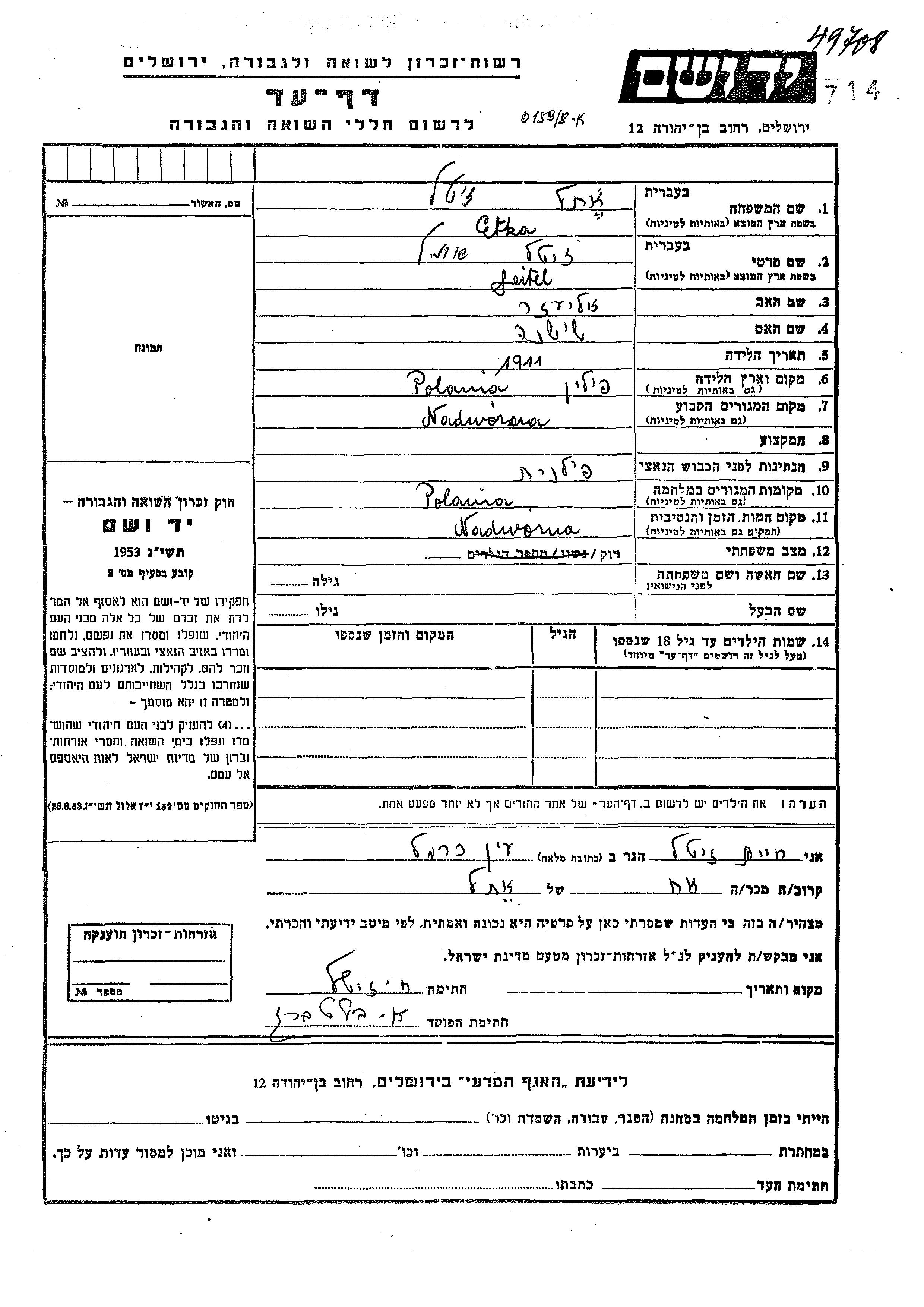 יד ושם - המפעל להנצחת השמות בדפי עד