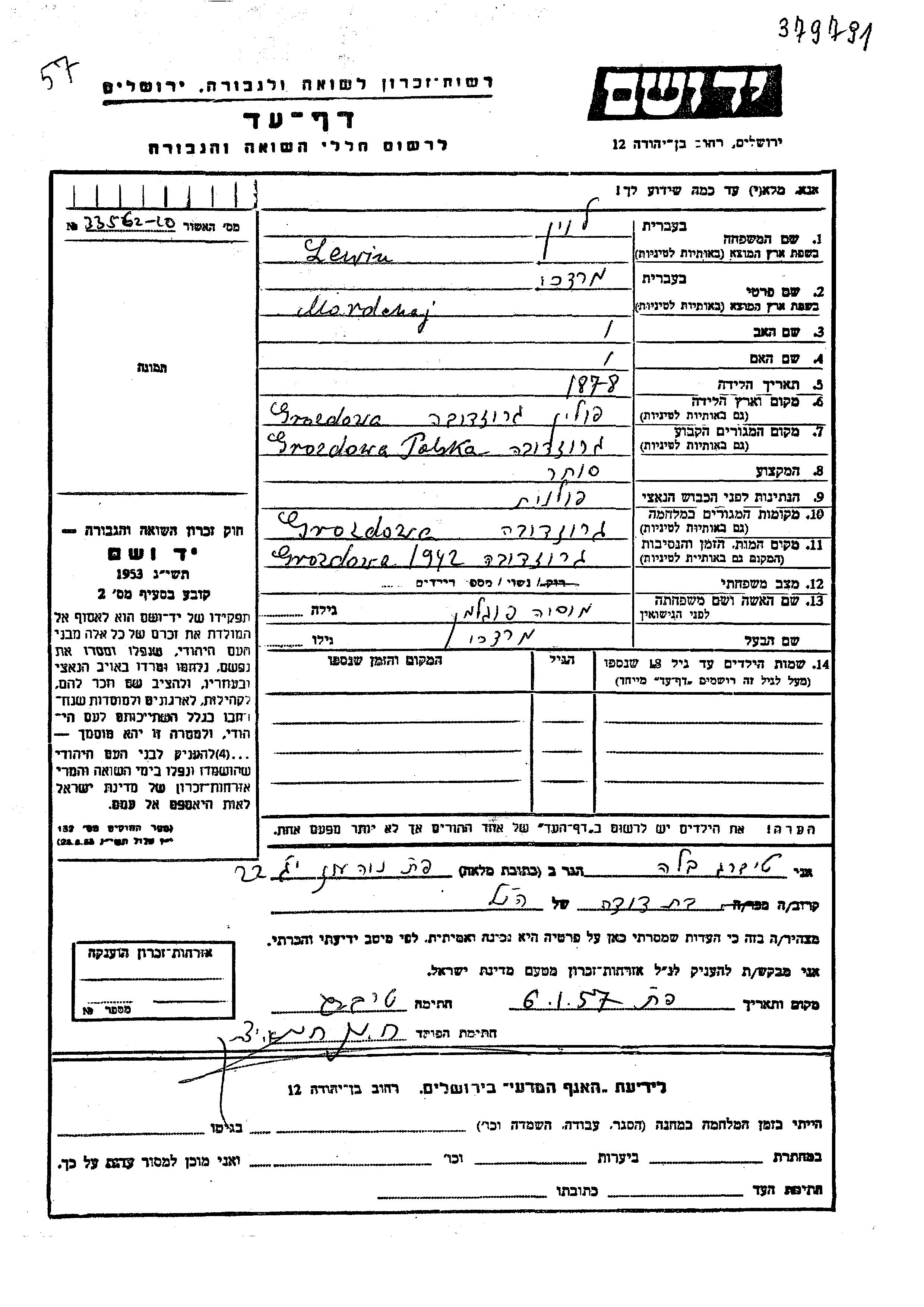 Mordchay Lewin נולד בGruzdowo שבפולין בשנת 1878. הוא היה סוחר ונשוי למוסיה לבית פוגלמן. לפני מלחמת העולם השניה התגורר בGruzdowo שבפולין. בזמן המלחמה הוא היה בGruzdowo שבפולין. הוא נרצח בשואה. מקום המוות: Gruzdowo שבפולין בשנת 1942.