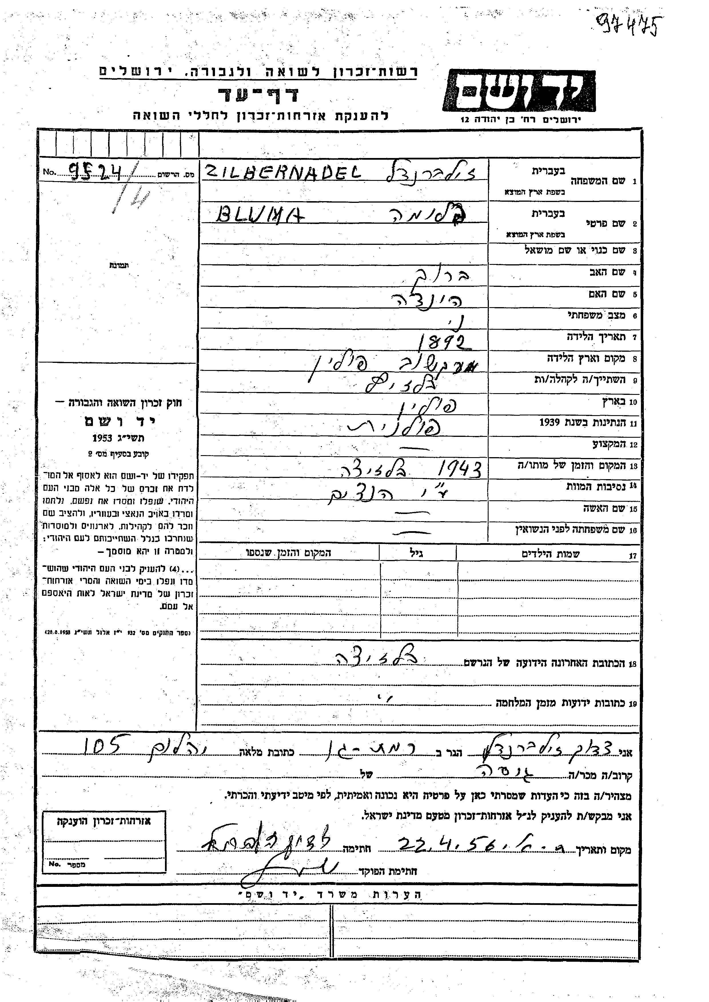 יד ושם - המפעל להנצחת השמות בדפי עד