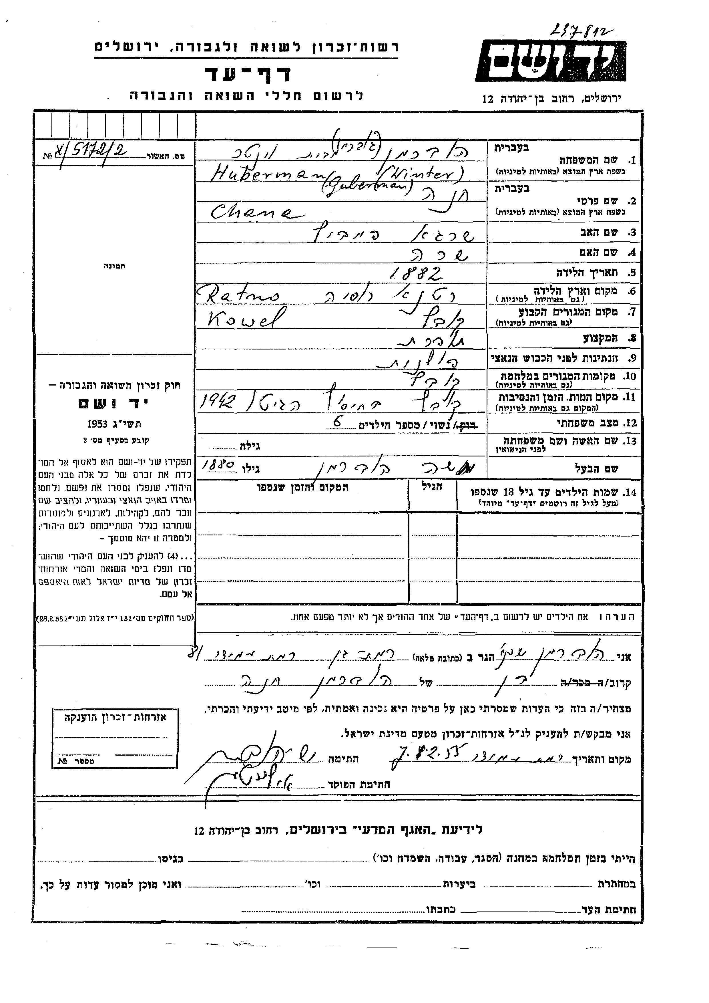 יד ושם - המפעל להנצחת השמות בדפי עד