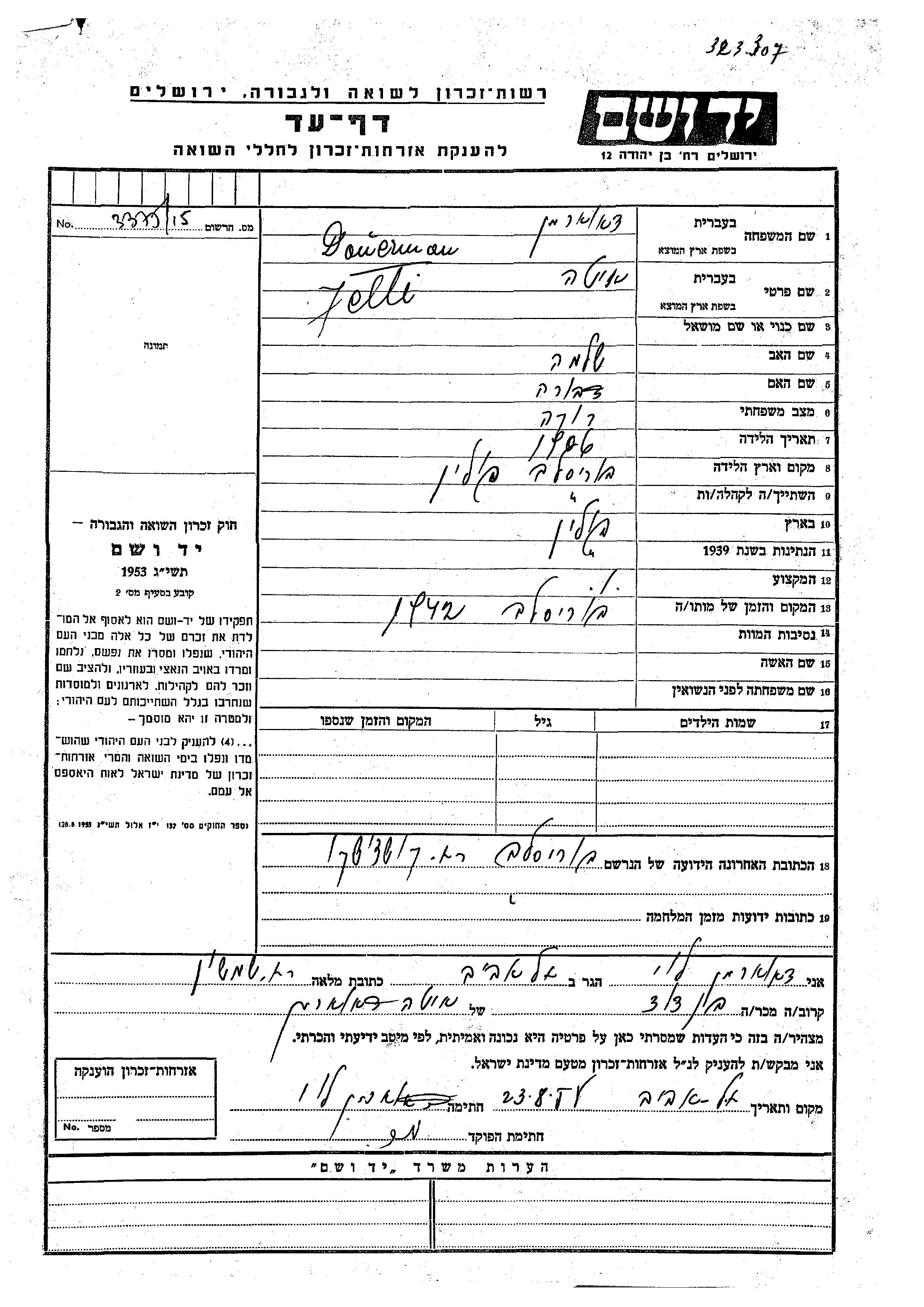 יד ושם - המפעל להנצחת השמות בדפי עד
