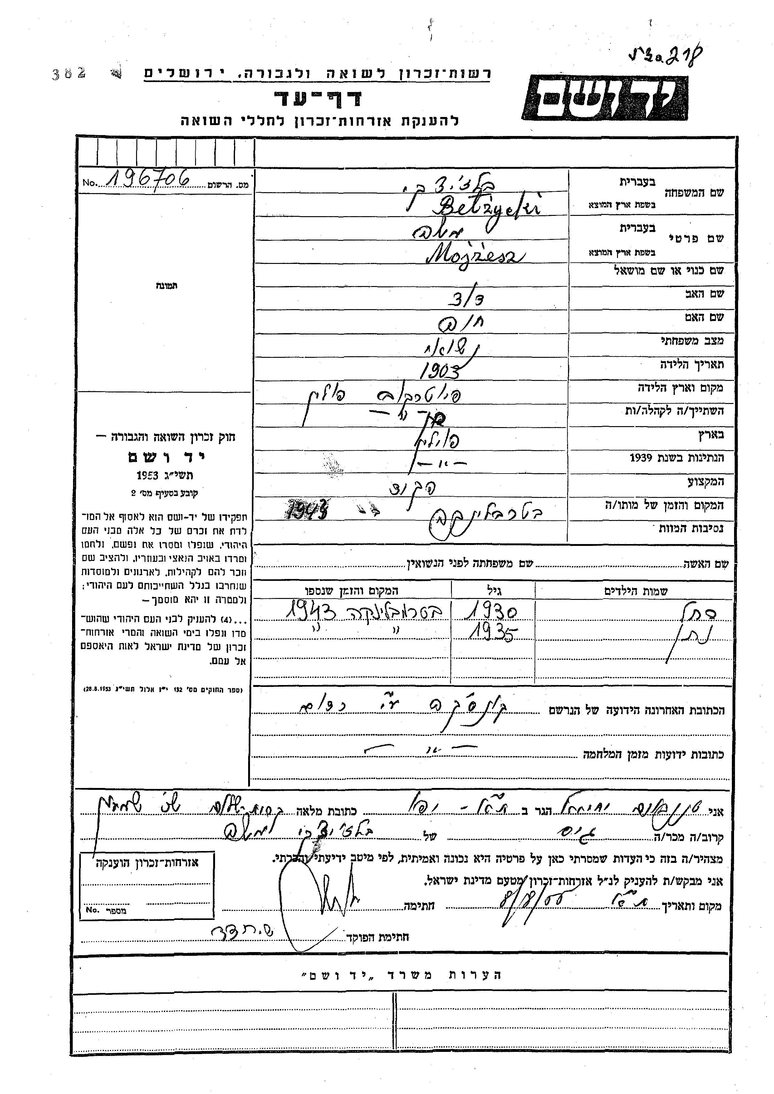 Belzycki Mojzesz 1903 Piotrkow, פולין דף-עד
