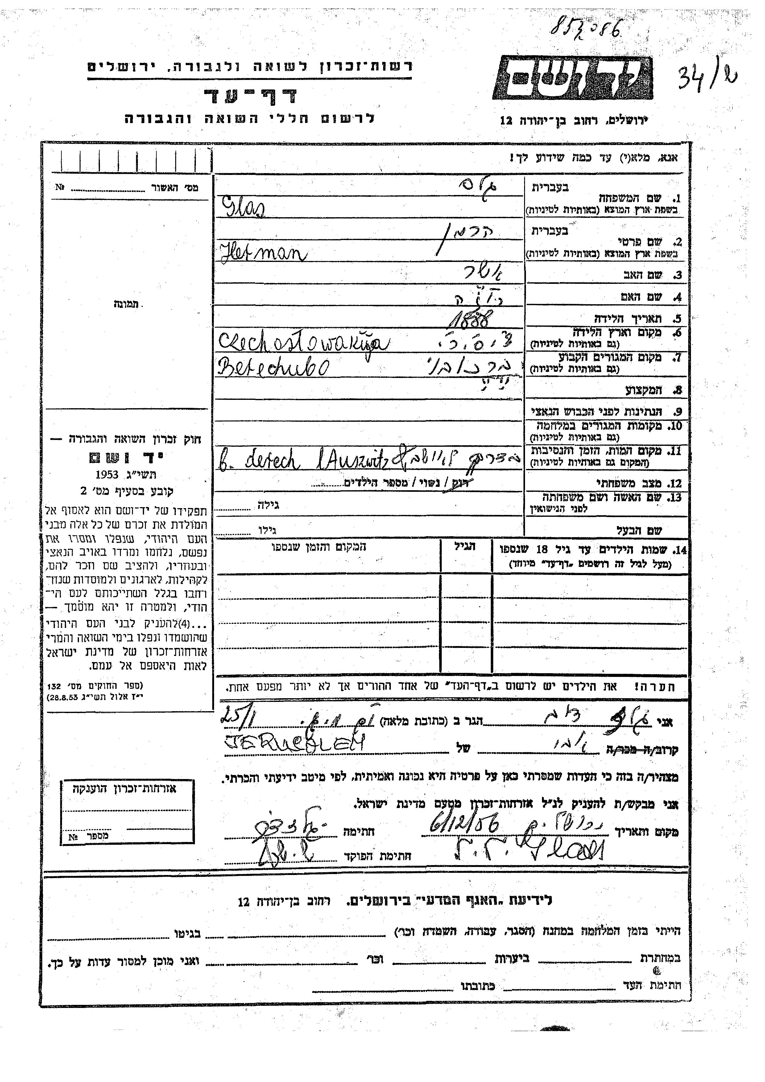 חיפוש שם מוסר דף העד. חיפוש לפי כל שם פרטי, כולל כינוי או שם חיבה