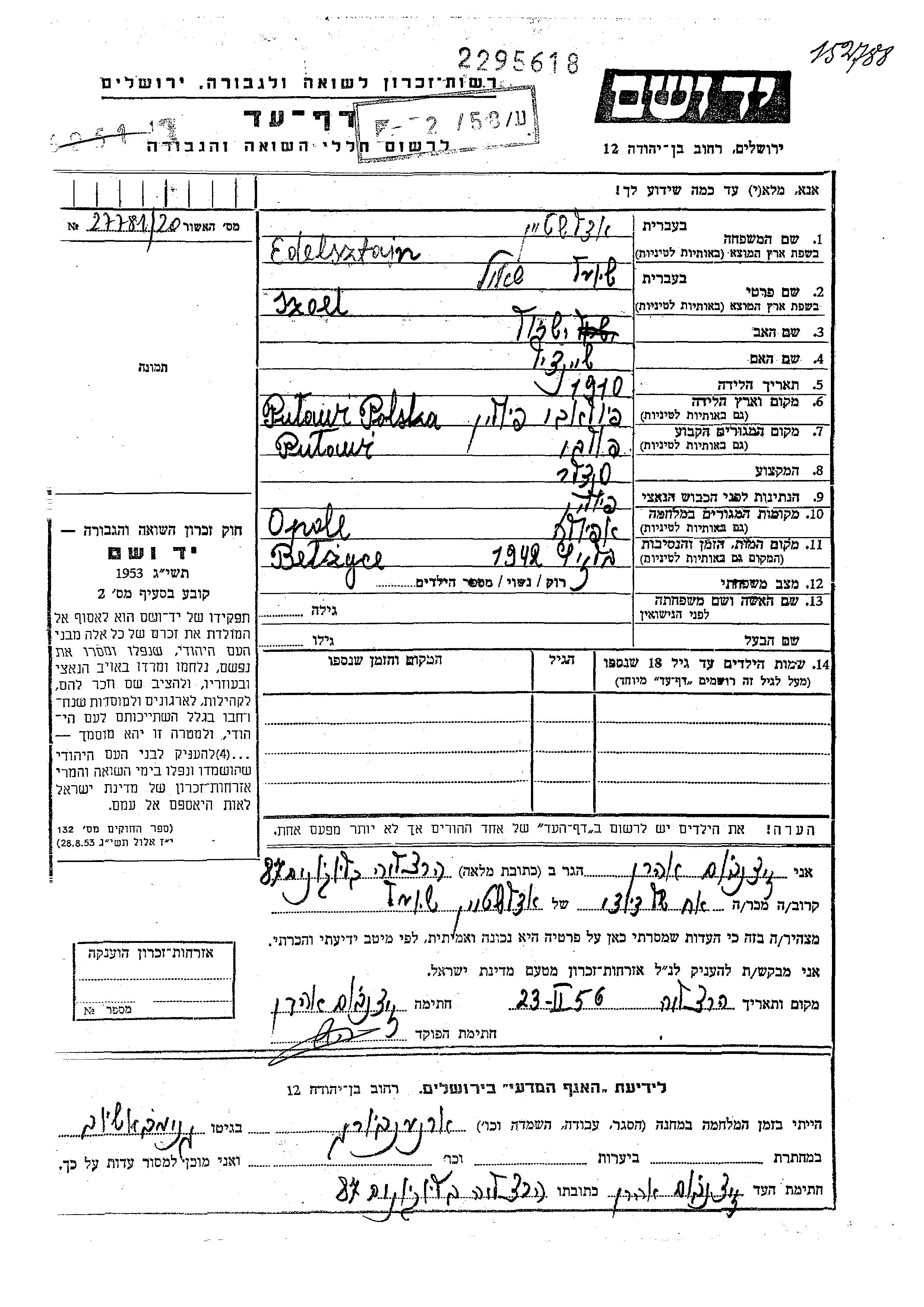 יד ושם - המפעל להנצחת השמות בדפי עד