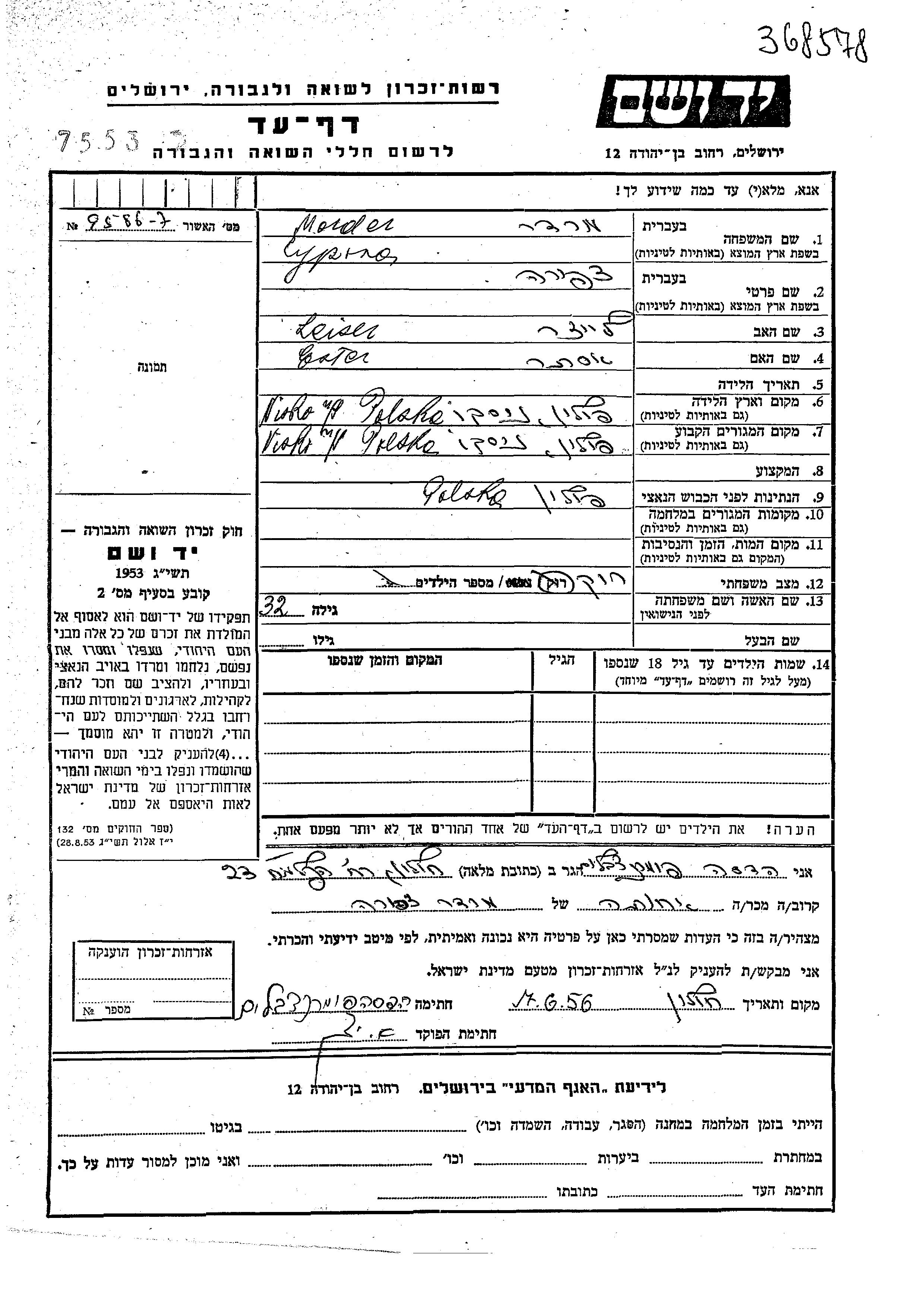 חיפוש שם מוסר דף העד. חיפוש לפי שם משפחה; כולל גם תוצאות חיפוש לפי שם הנעורים של אישה לפני הנישואין