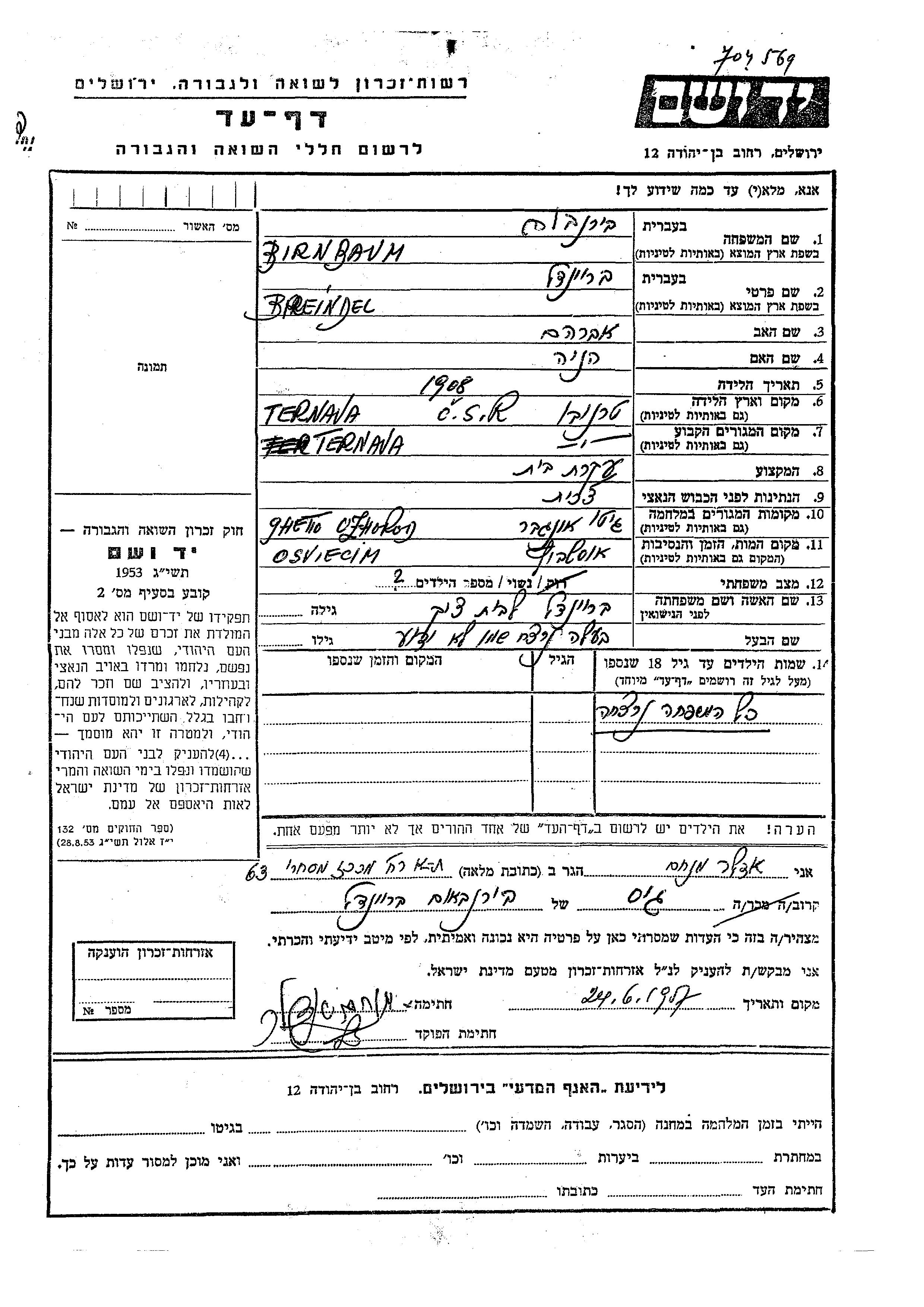 יד ושם - המפעל להנצחת השמות בדפי עד