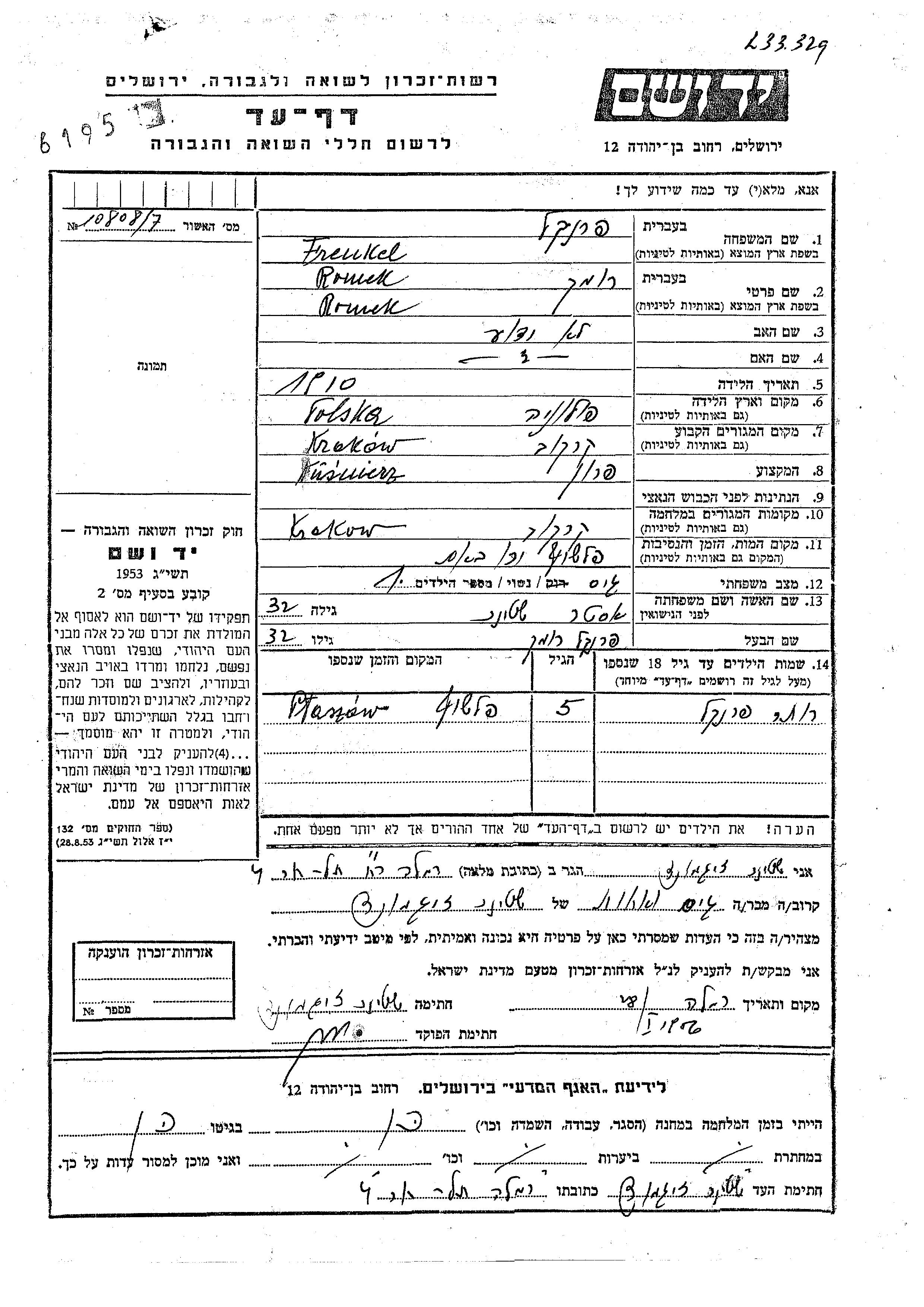 פרנקל Romek 1910 Krakow, פולין דף-עד