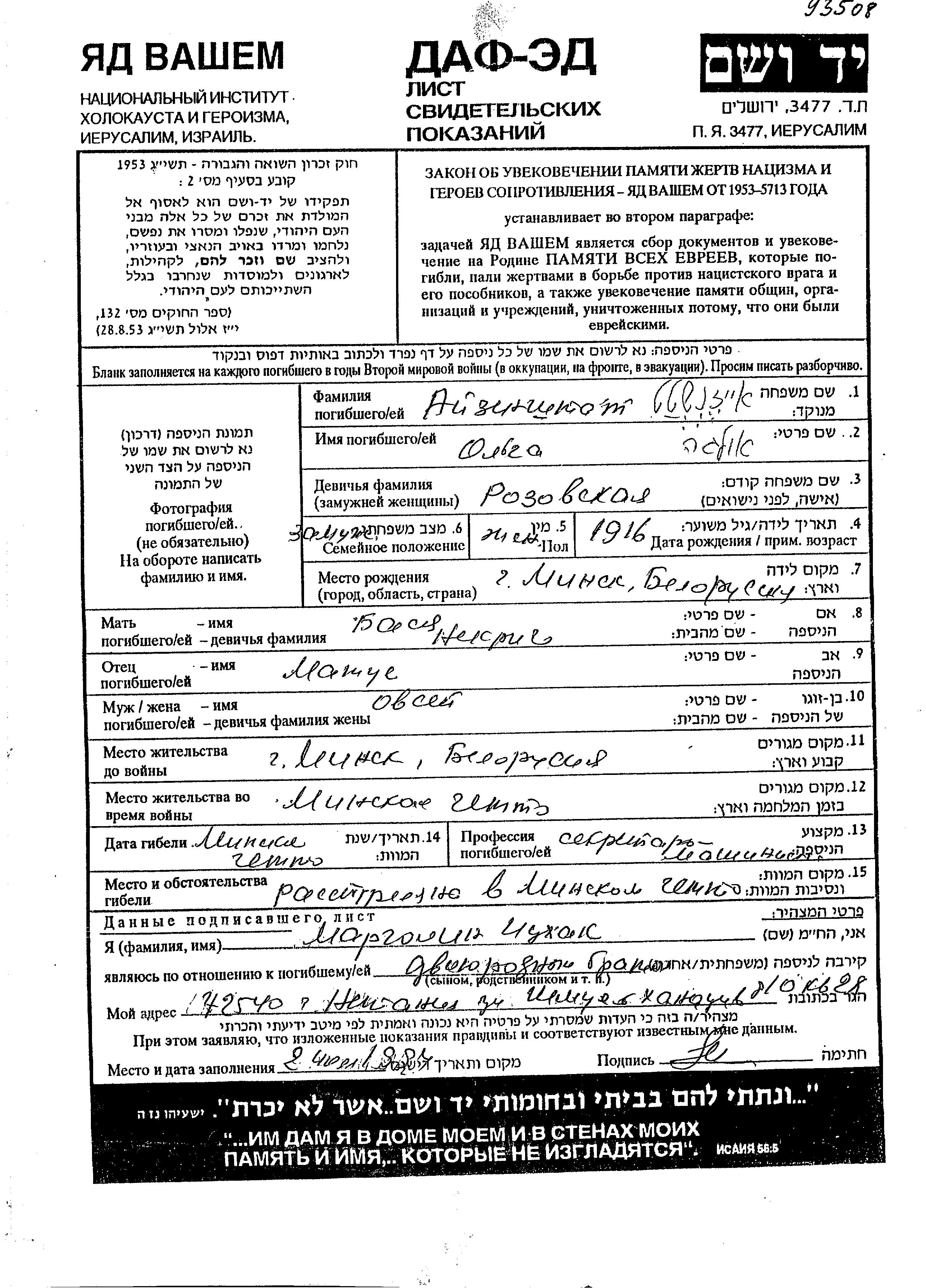 Aizenshtat אולגה 1916 Minsk, ביאלורוסיה (ברה"מ) דף-עד