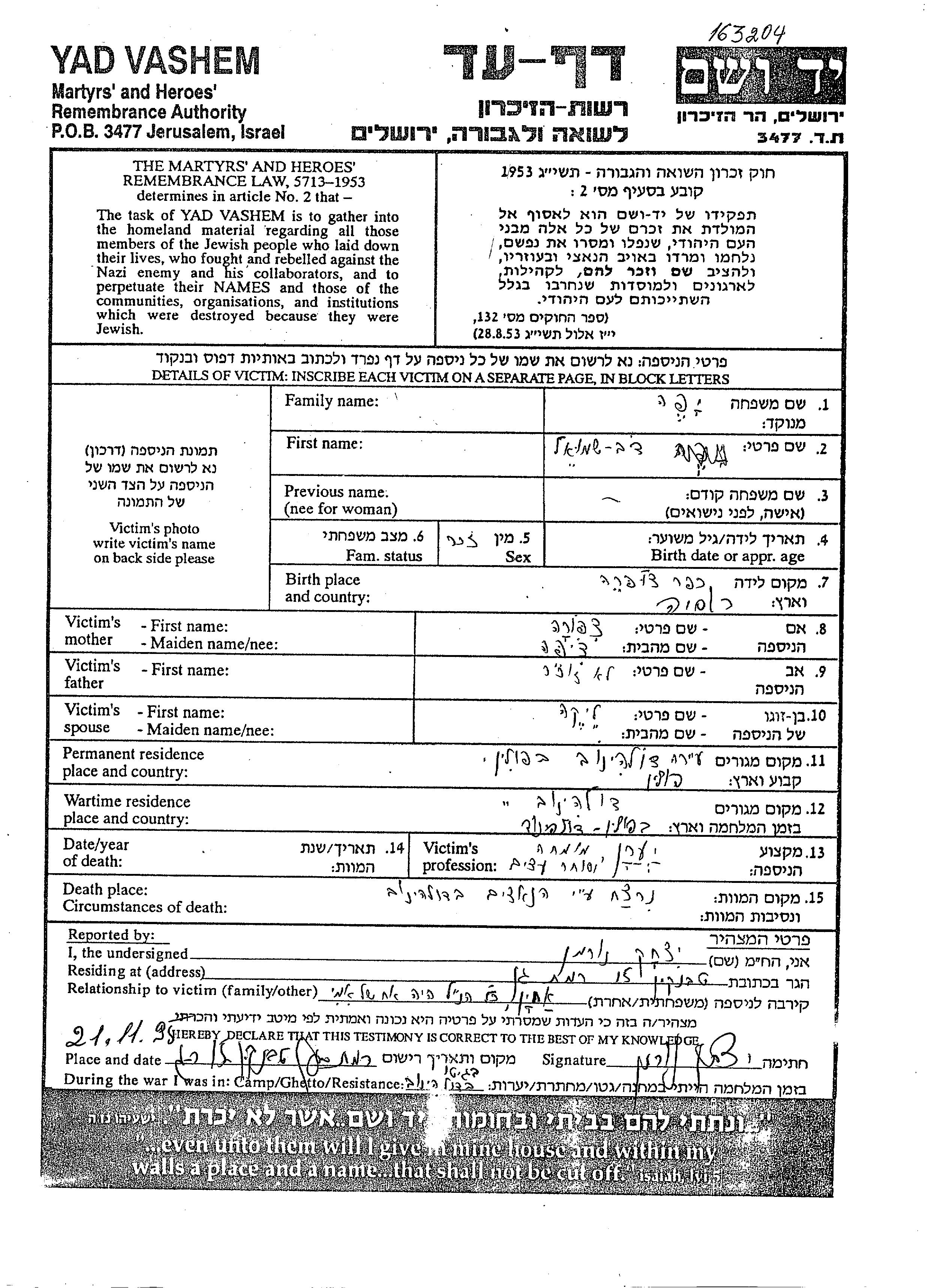 דב שמואל Yafe נולד ברוסיה (ברה"מ) לTzipa. הוא היה יערן ונשוי לLeike. לפני מלחמת העולם השניה התגורר בDolhinow שבפולין. בזמן המלחמה הוא היה בDolhinow שבפולין. דב שמואל נרצח בשואה. מקום המוות: Dolhinow שבפולין.
