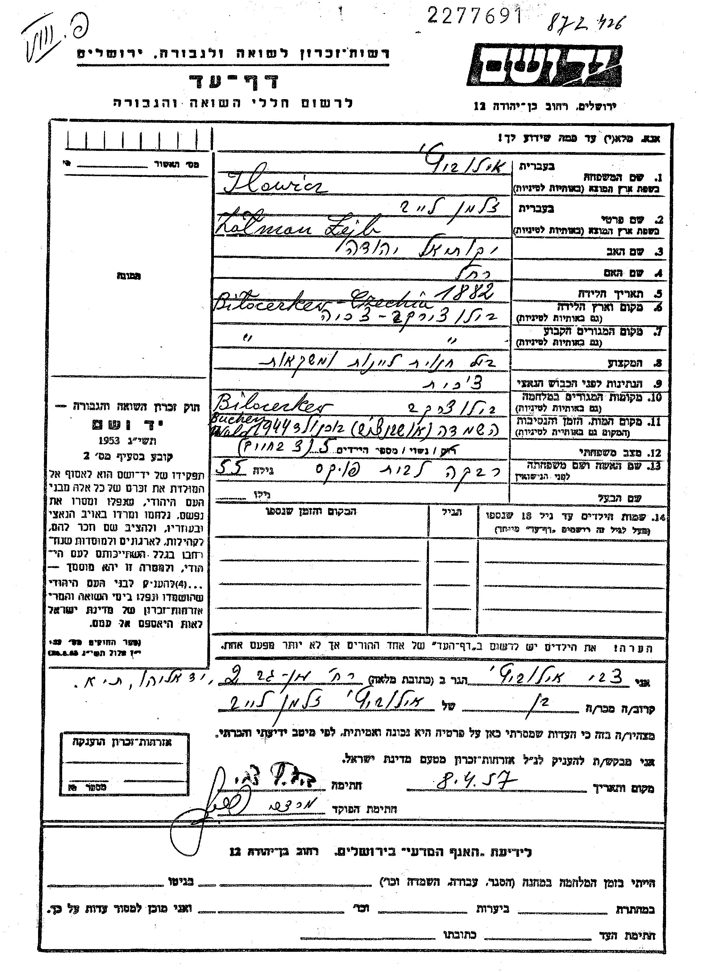זלמן Lejb נרצח בשואה. מקום המוות: Buchenwald שבגרמניה בשנת 1944.